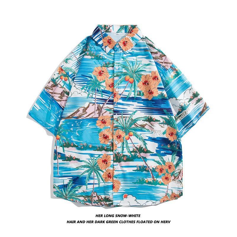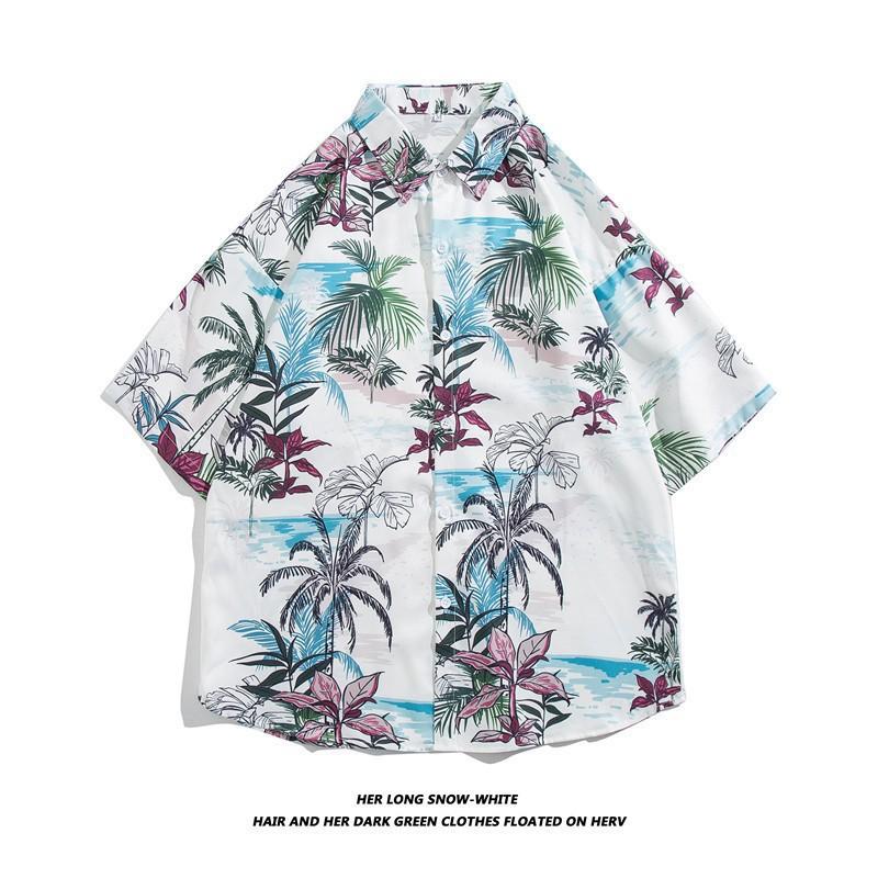 Camisa floral de manga corta para hombre, nueva camisa de verano 2024, de moda, de talla grande, informal, holgada y estampada para playa.