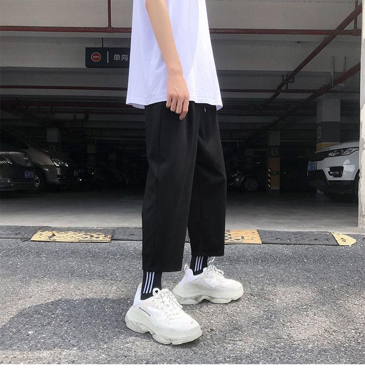 Pantalones de Otoño para Hombre Estilo Coreano Modernos Pantalones Nueve Puntos Versátiles Sueltos Rectos Casuales para Pareja Estilo Hong Kong Ins Pantalones Deportivos