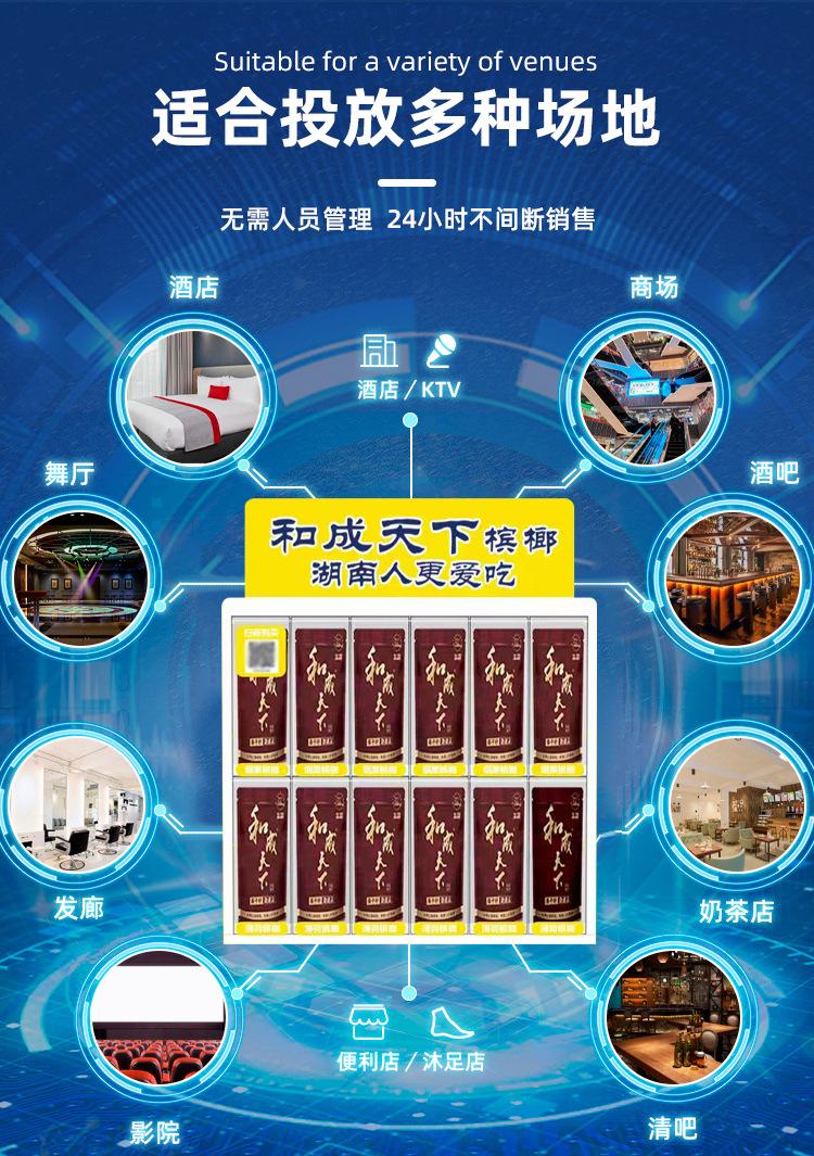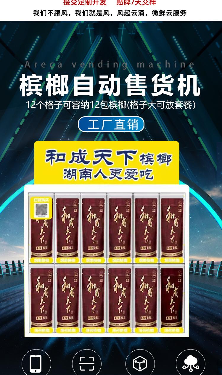 Máquina expendedora de nueces de betel de autoservicio, sin operador, disponible las 24 horas, con código de escaneo inteligente pequeño y máquina expendedora de bebidas y refrigerios.