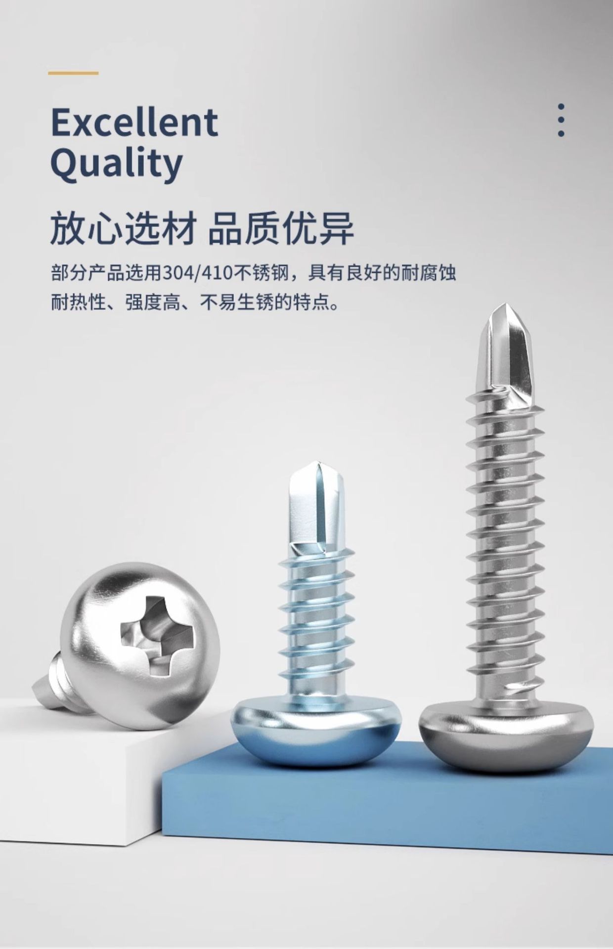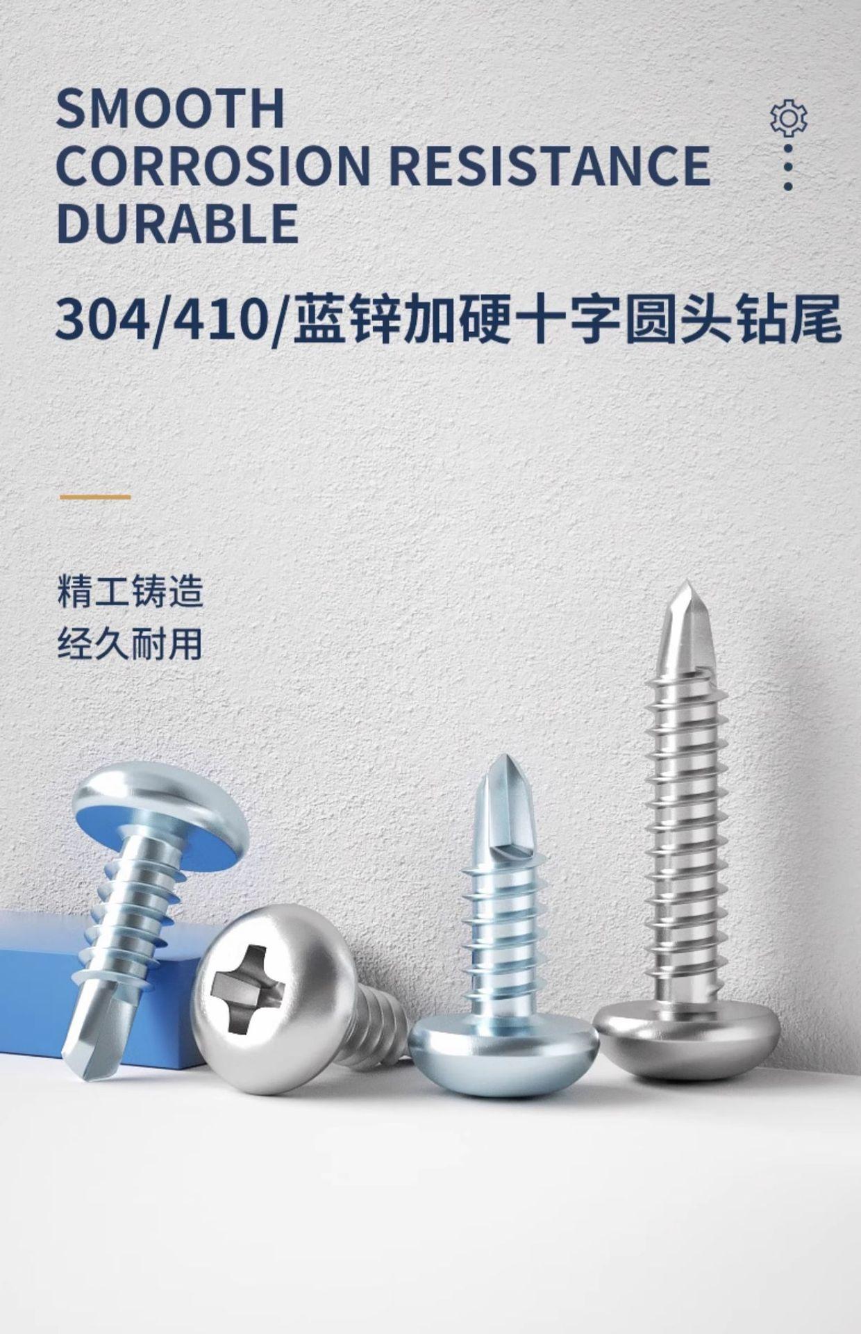 Tornillo autorroscante de cabeza redonda con cola de milano, galvanizado en hierro, tornillo autorroscante de cabeza plana de acero inoxidable, tornillo de cola de milano autoperforante