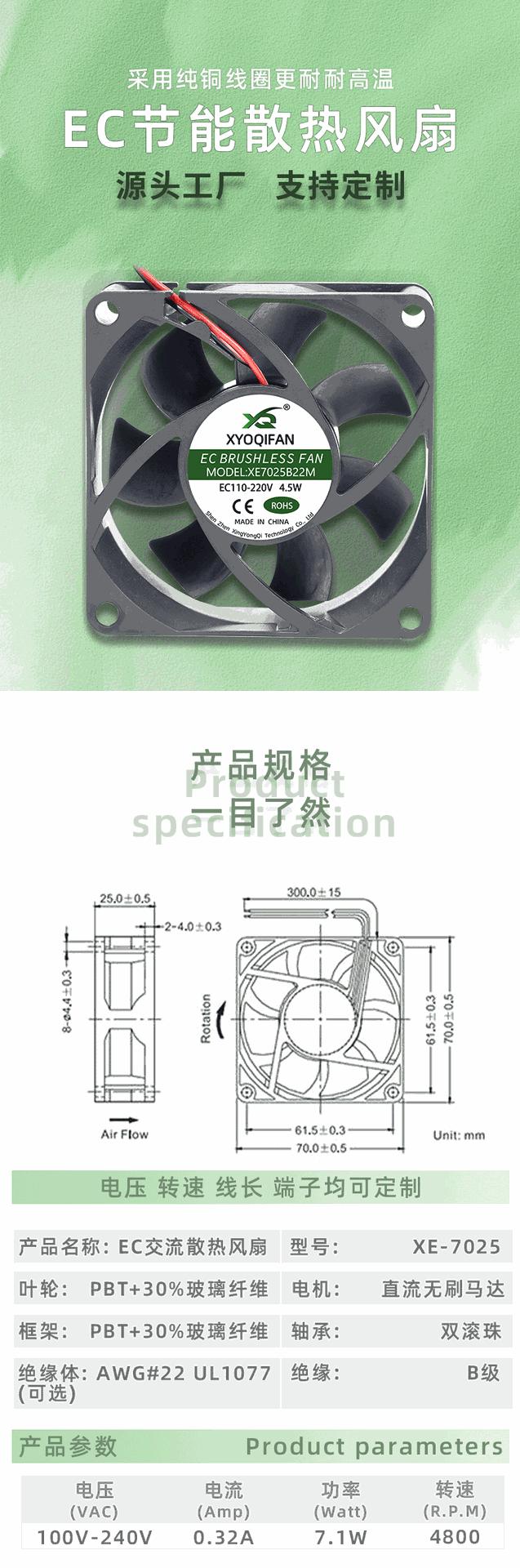 Ventilador de refrigeración EC7025 de 100-220 V para chasis de gabinete, 7 cm, CA/CC, gran volumen de aire, industrial, venta al por mayor de fábrica