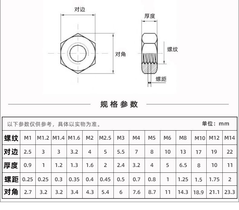 M2 (nickel plated), M2.5 (nickel plated), M3 (nickel plated), M4 (nickel plated), M5 (nickel plated), M6 (nickel plated)