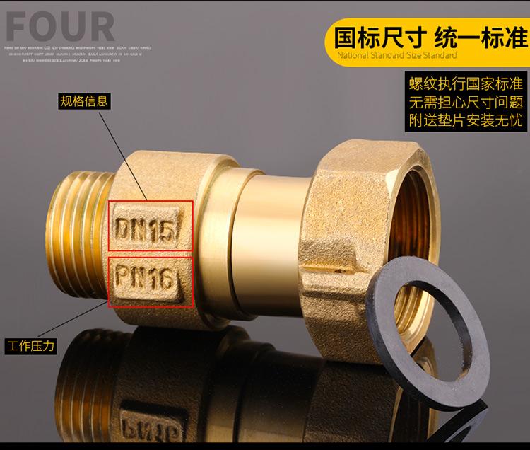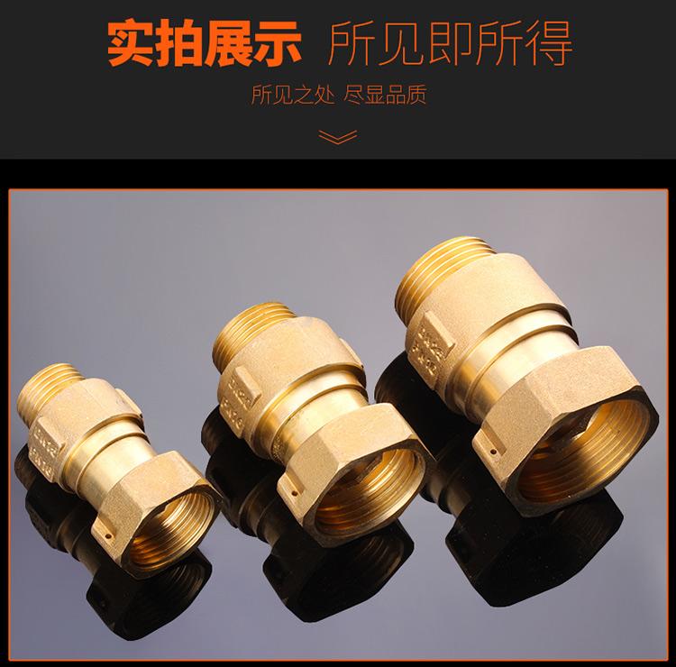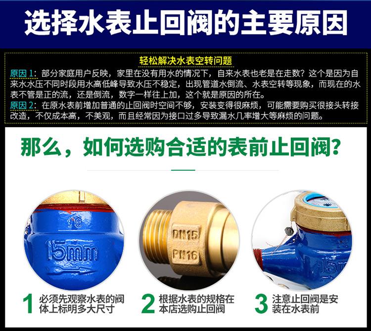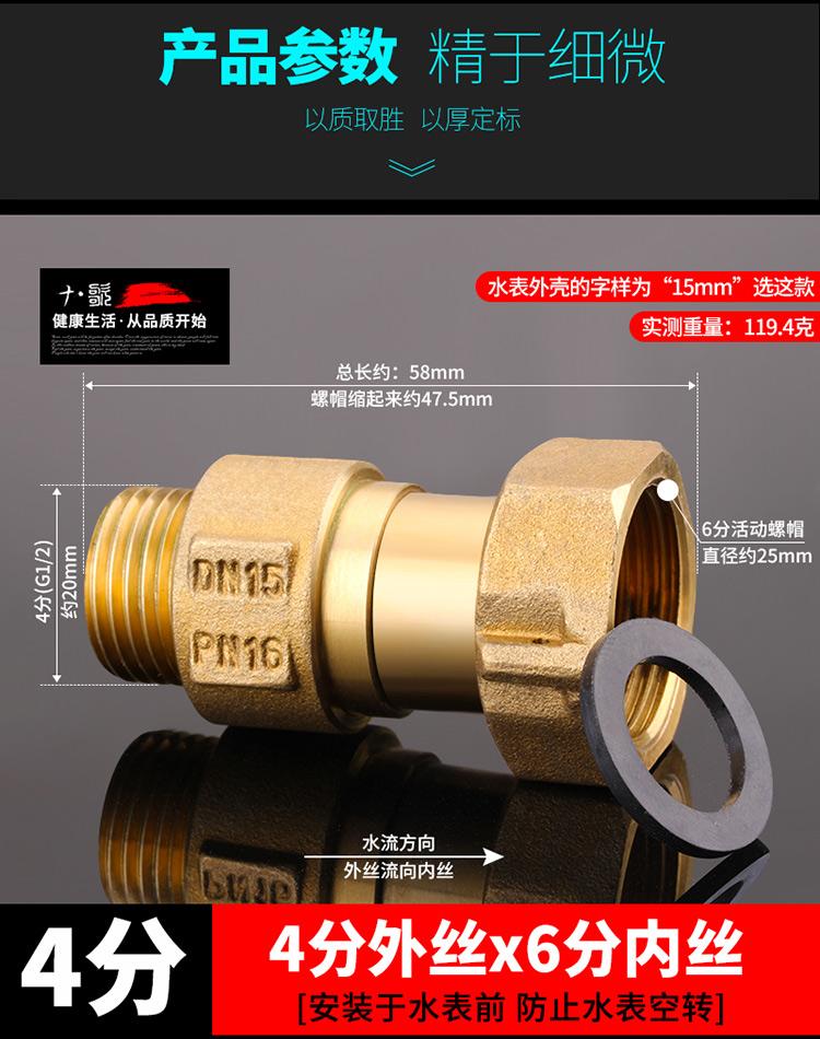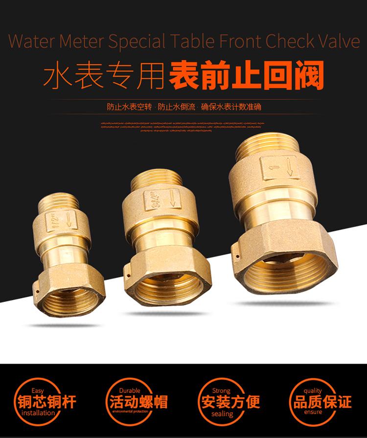 2. Sobre la instalación: retire el adaptador y la tuerca equipados originalmente con el medidor de agua, y reemplácelos con la válvula de retención. La rosca interna de la válvula es la misma que la tuerca del adaptador original, que también es un diseño de junta flexible, y la operación es muy conveniente.