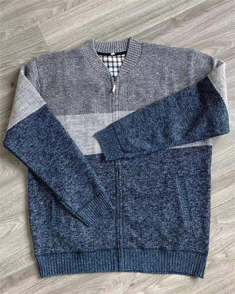 Compra Suéter holgado informal de otoño e invierno de comercio exterior para hombre, chaqueta de punto con cremallera y color a juego, estilo coreano, 2023 al por mayor en Joom.pro
