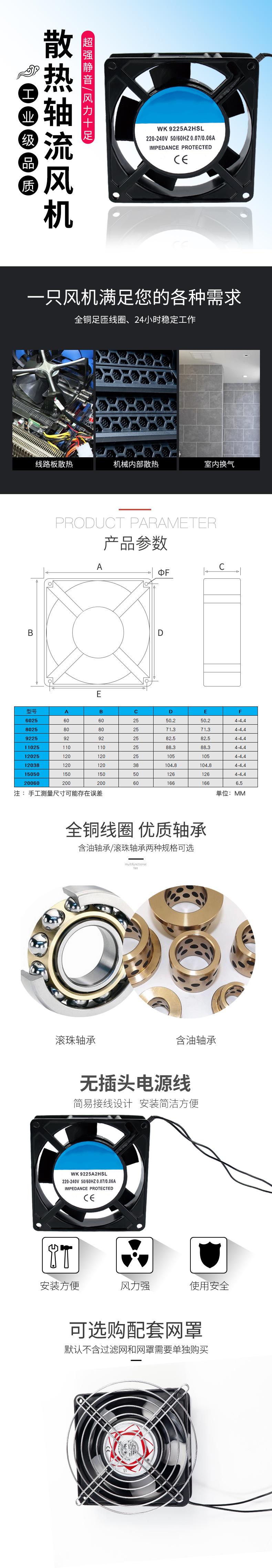 Ventilador de flujo axial para chasis de gabinete, 220 V, 20 cm, FP-20060EX-S1-B