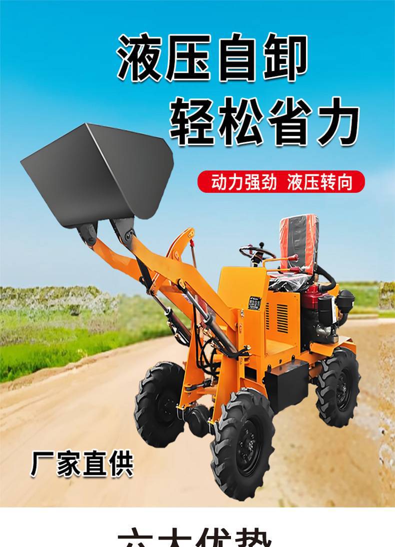 Carretilla elevadora pequeña con barra horizontal, tracción en las cuatro ruedas, para obras de construcción, excavadora, carretilla elevadora diésel, cargadora para limpieza de estiércol agrícola
