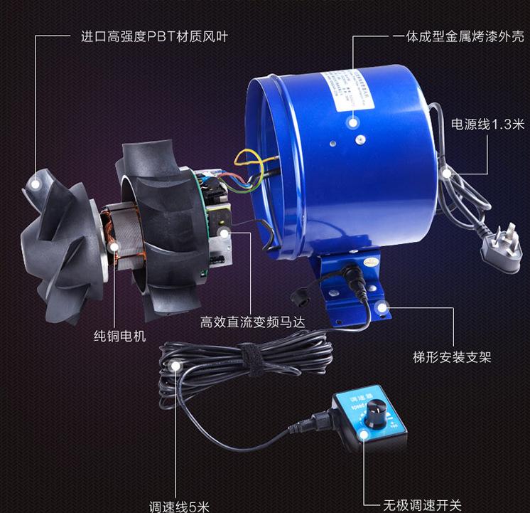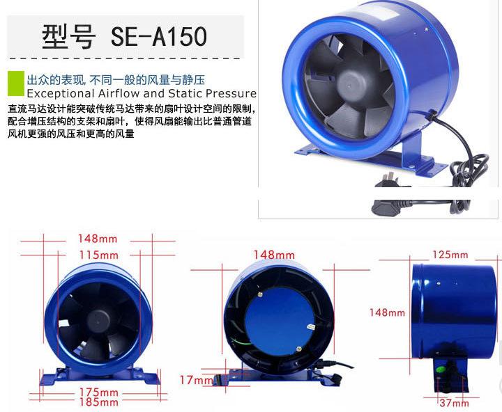 Ventilador de tubo de 150 W, purificador de aire de 6 pulgadas, control de velocidad de frecuencia variable, flujo axial, directo de fábrica