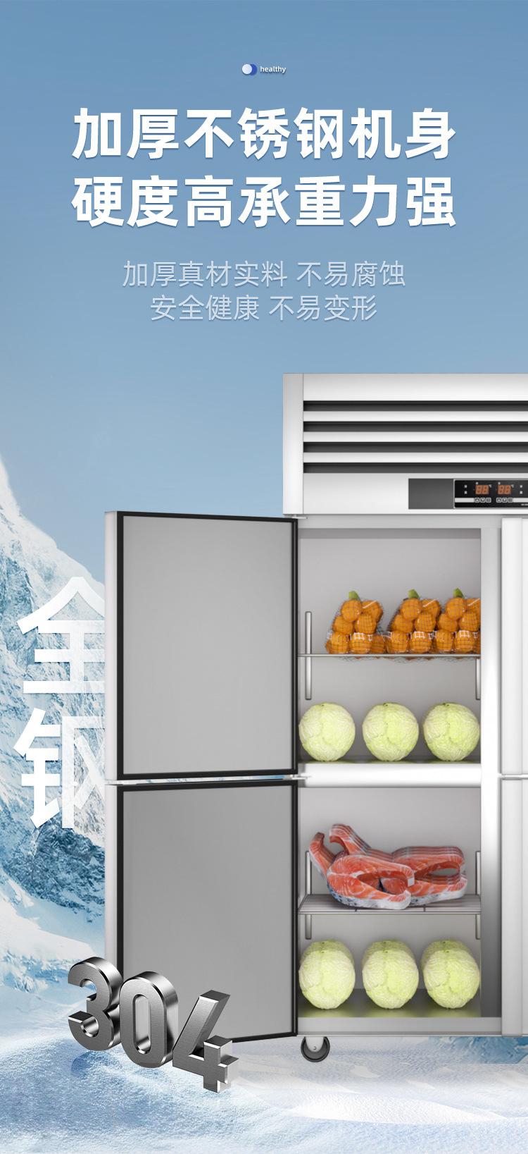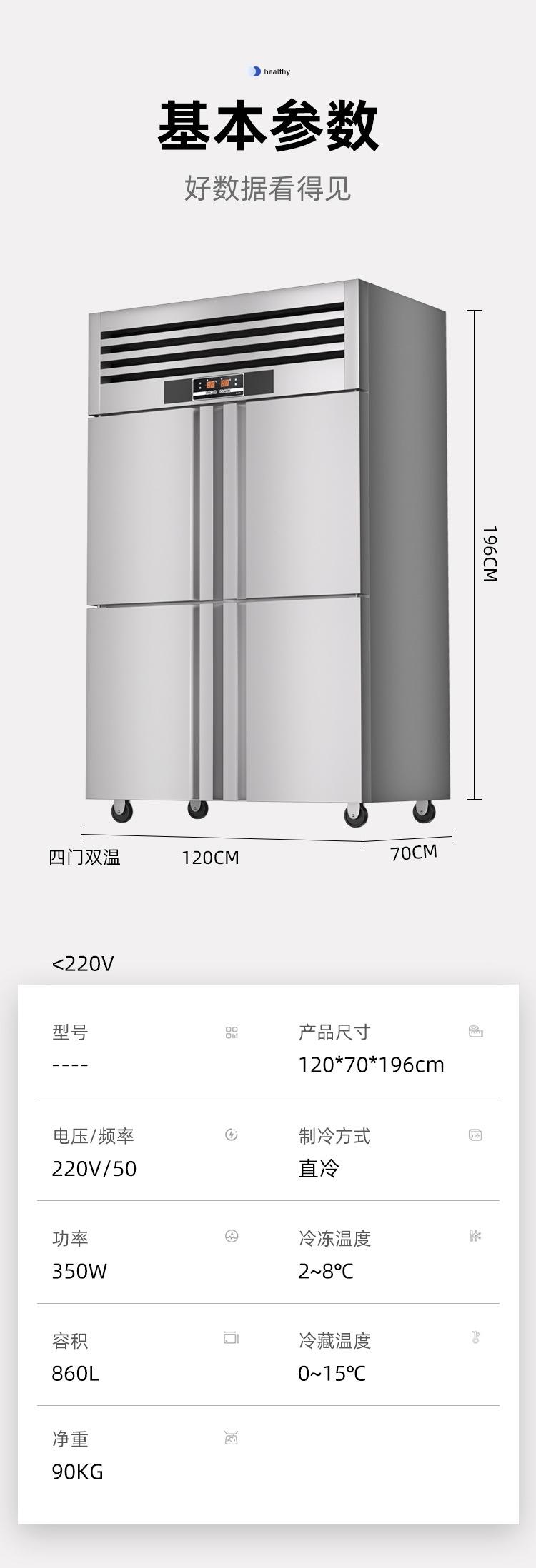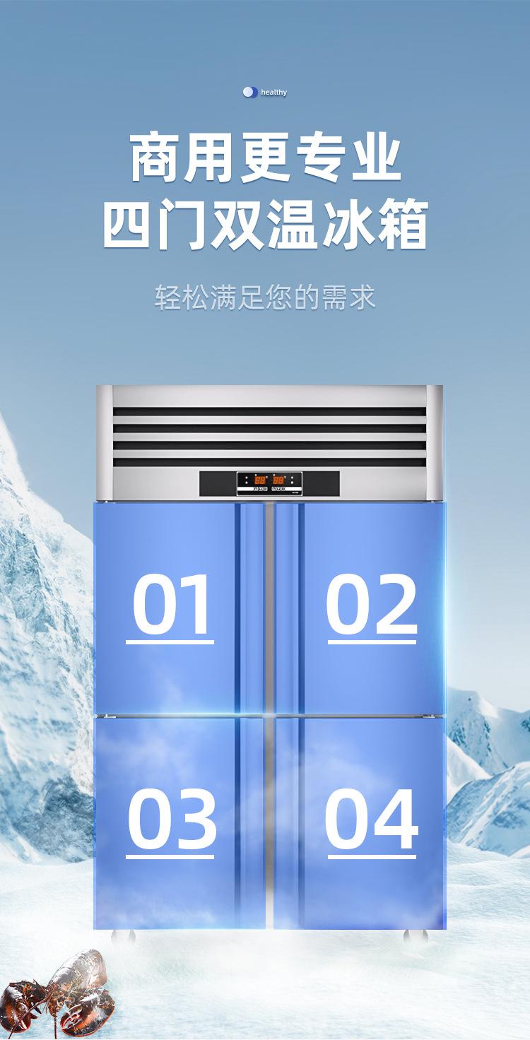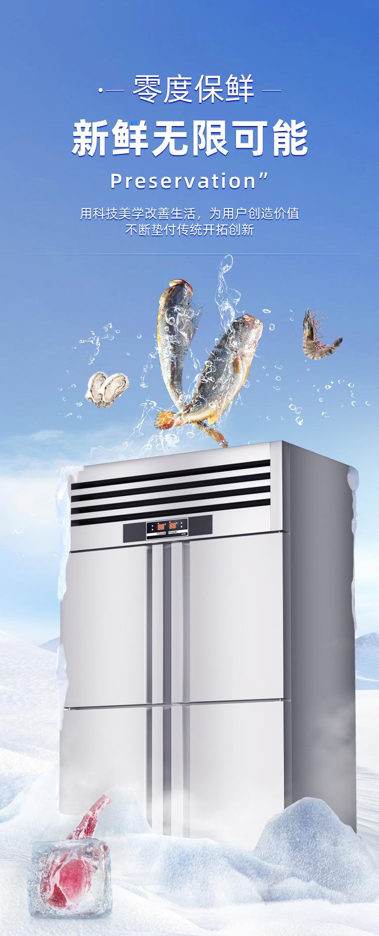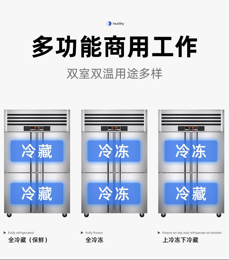 Congelador Comercial Gabinete Vertical Congelación Baja Temperatura Refrigerador Doble Puerta Cuatro Puertas Doble Temperatura Gabinete Refrigerado para Restaurante Refrigerador Comercial