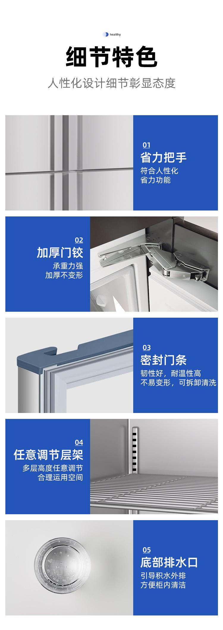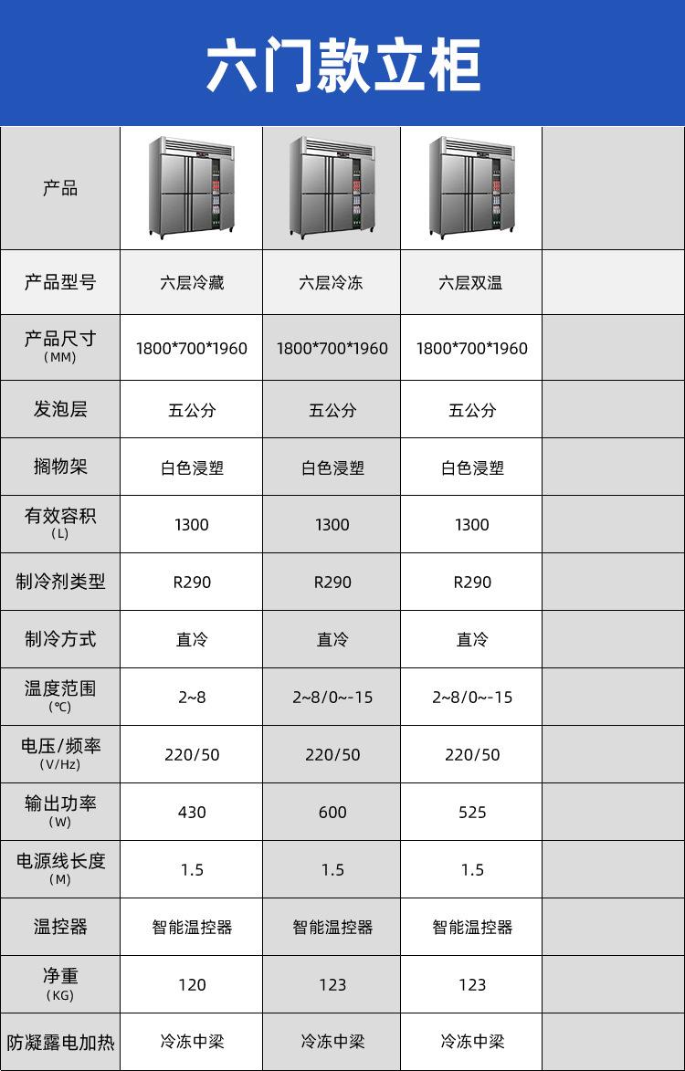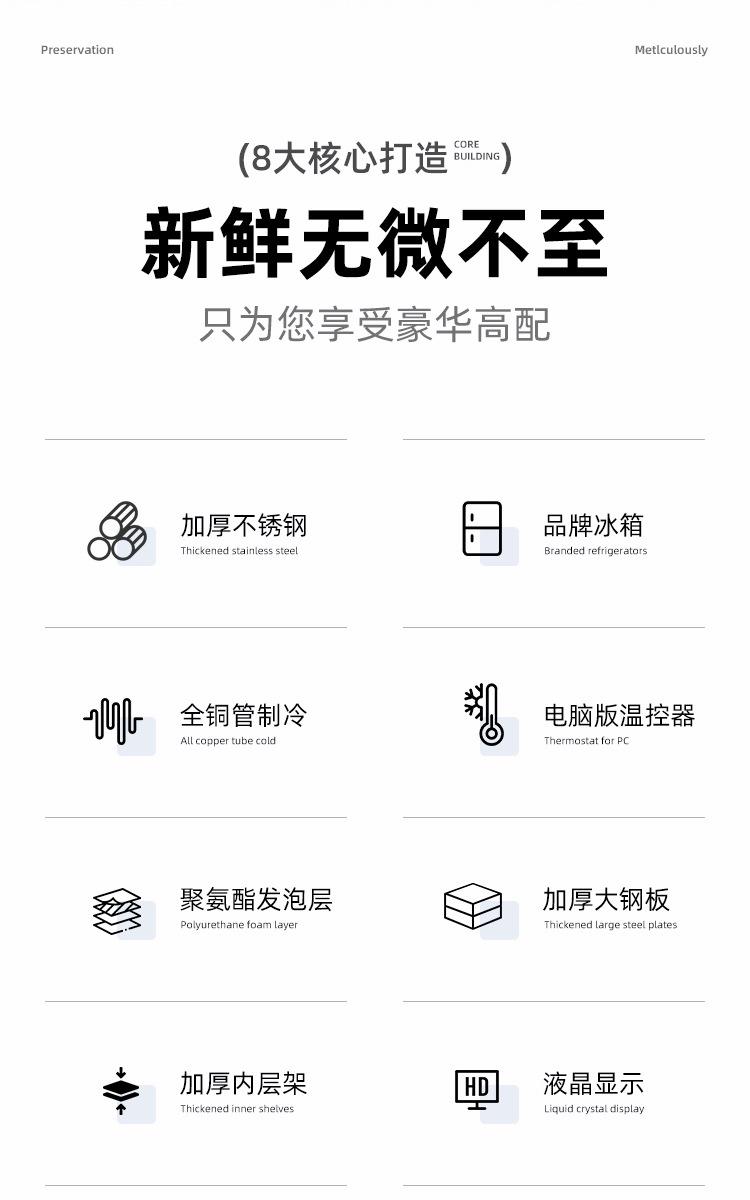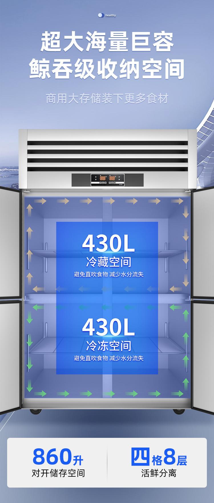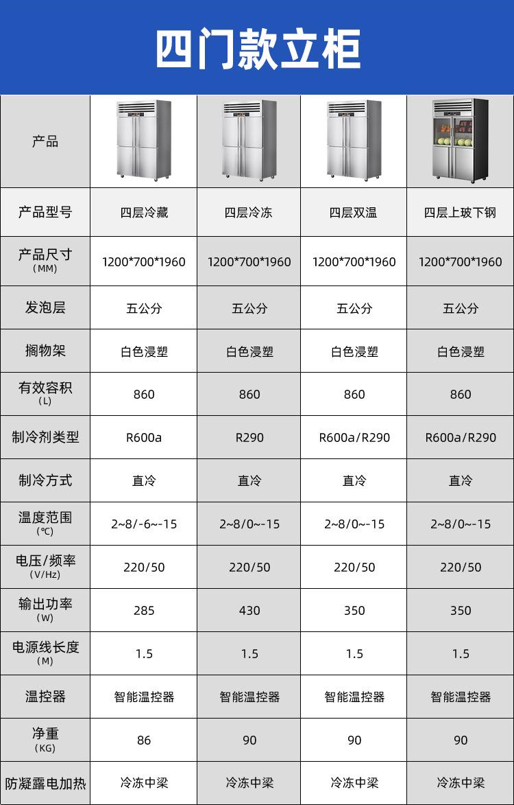 Congelador Comercial Gabinete Vertical Congelación Baja Temperatura Refrigerador Doble Puerta Cuatro Puertas Doble Temperatura Gabinete Refrigerado para Restaurante Refrigerador Comercial