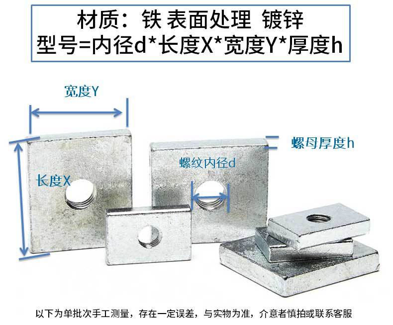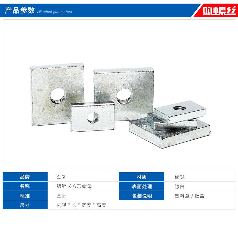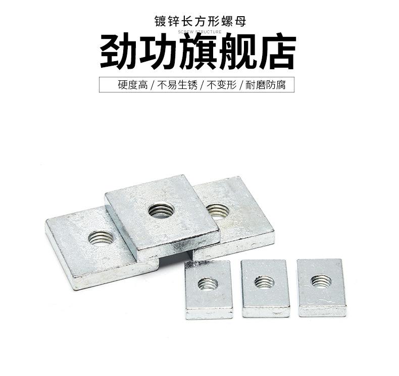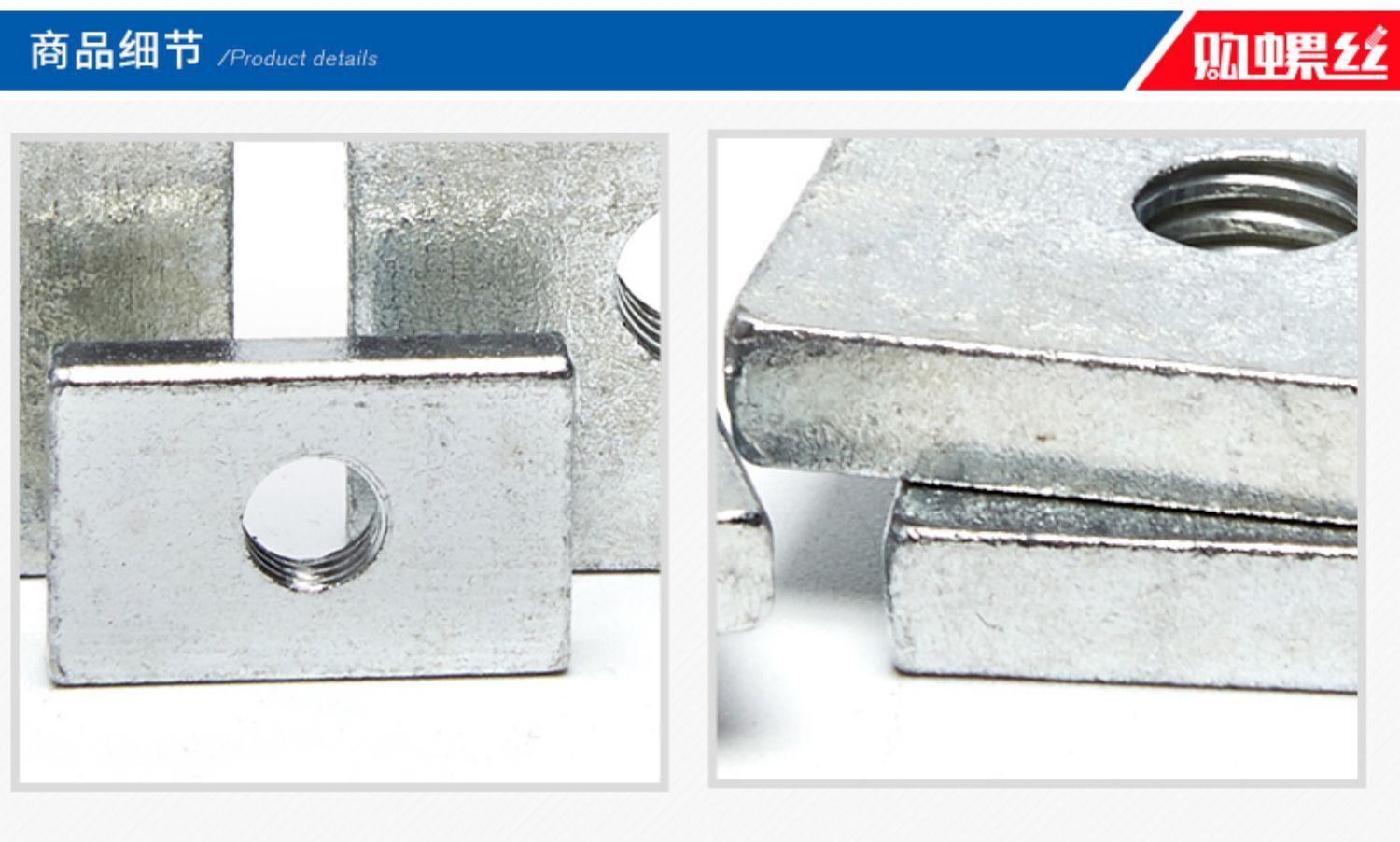 Tuerca rectangular M4M5M6M8 Tuerca rectangular galvanizada Perfil de aluminio de hierro Accesorios Tuerca de tira 7 pliegues
