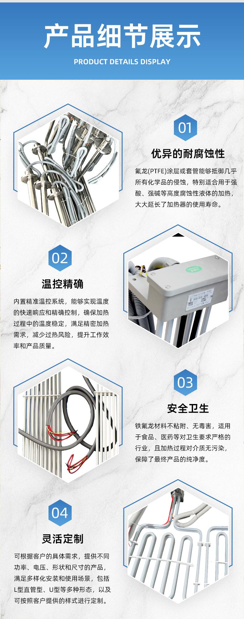 Calentador de Teflón para Tanques de Eliminación de Calentamiento de Aceite, Calentador Tipo Bobina Resistente a la Corrosión para Soluciones Químicas de Galvanoplastia