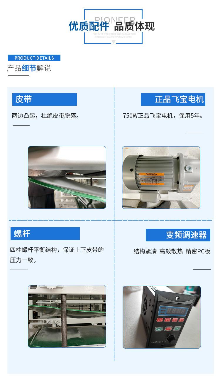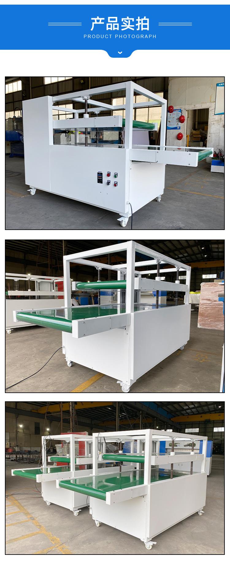 Es adecuada para todo tipo de productos que requieren pegado y que no requieren una fuerte extrusión, como algodón perlado, embalajes de EVA, suelas de zapatos, cartón, cuero, etc. Mediante la presión del rodillo y la transmisión de la correa, los productos pegados se presionan firmemente para aumentar la adherencia, reemplazando así el prensado manual tradicional. Pantalla digital con conversión de frecuencia y velocidad ajustable.