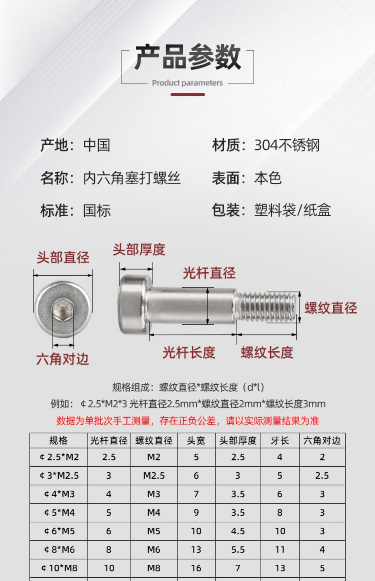 ¢2.5*M2*3[20 pieces], ¢2.5*M2*4[20 pieces], ¢2.5*M2*5[20 pieces], ¢2.5*M2*6[20 pieces], ¢2.5*M2*8[20 pieces], ...