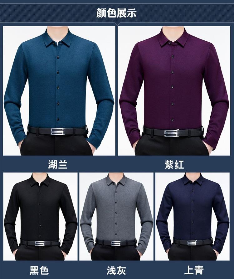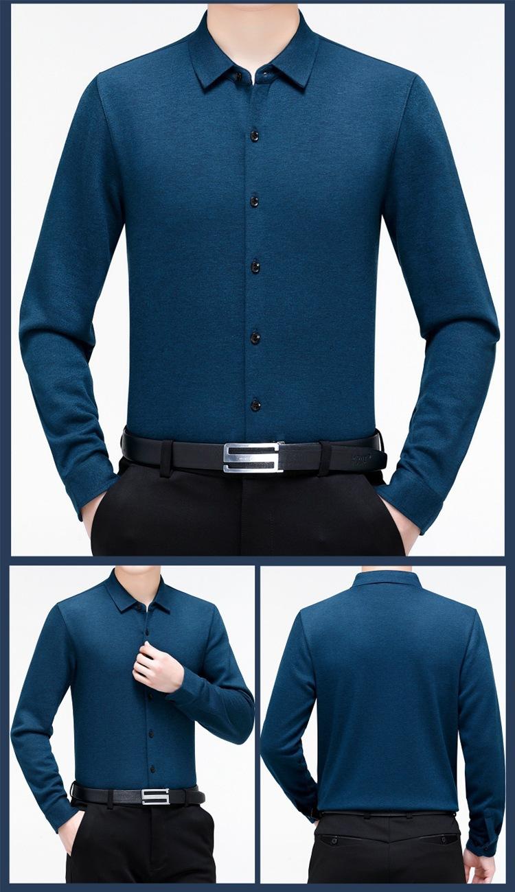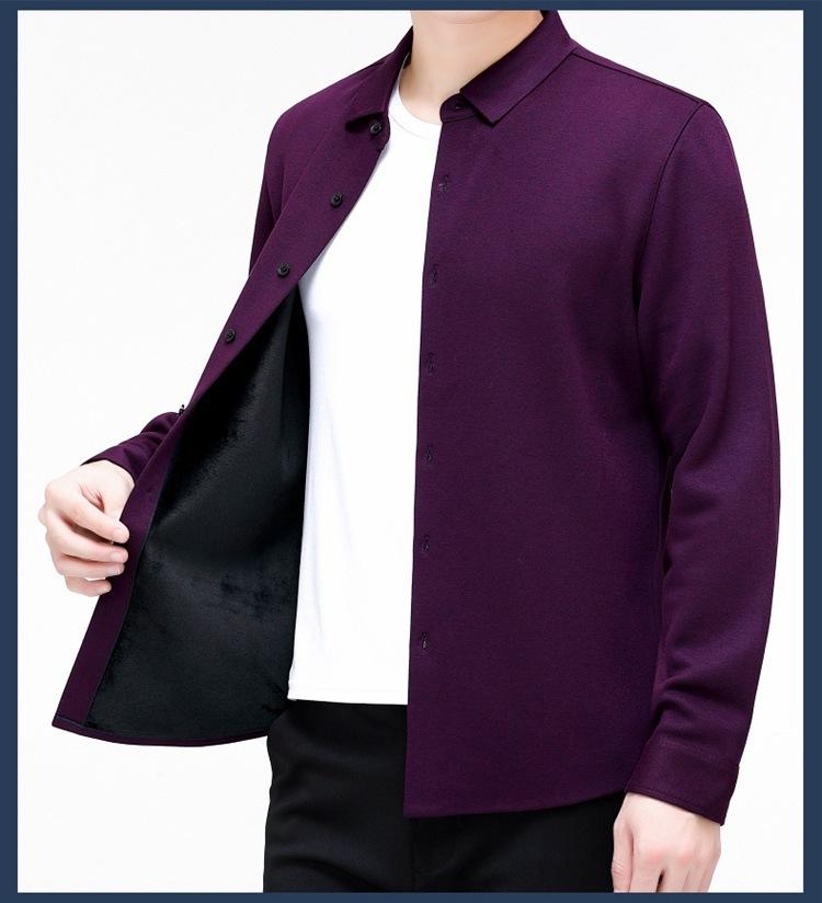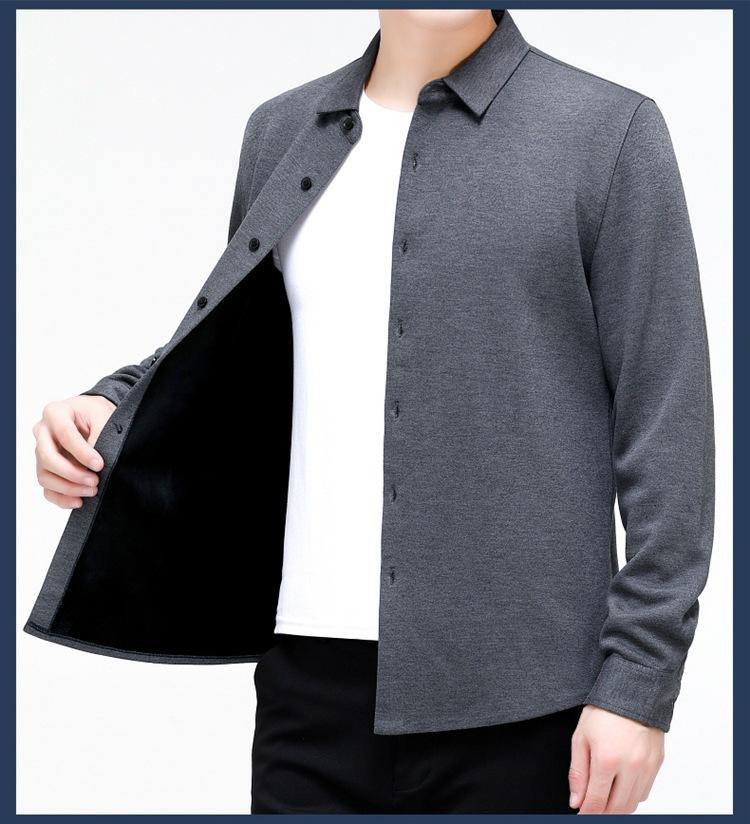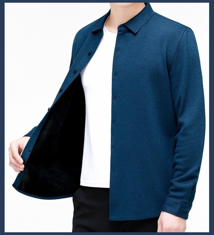 Compra Camisa Cálida de Cachemira para Hombre de Invierno Forrada de Felpa para Negocios Casual Color Sólido Camisa de Punto Papá Manga Larga Ropa de Hombre al por mayor en Joom.pro
