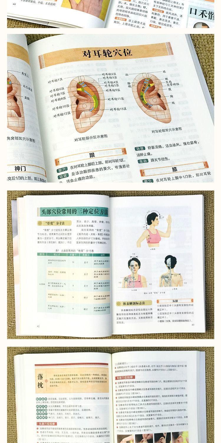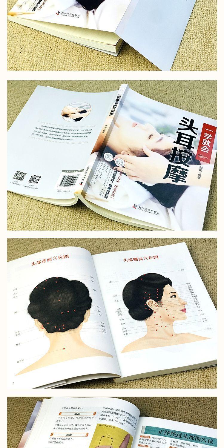Los 3 volúmenes de cabeza, oído, mano, pie, cabeza, masaje chino y libros de masaje sobre meridianos humanos y puntos de acupuntura.