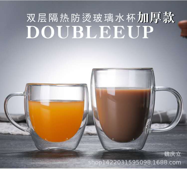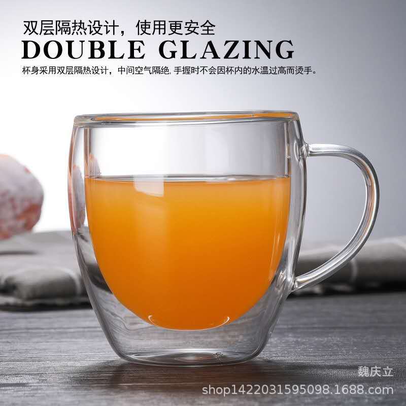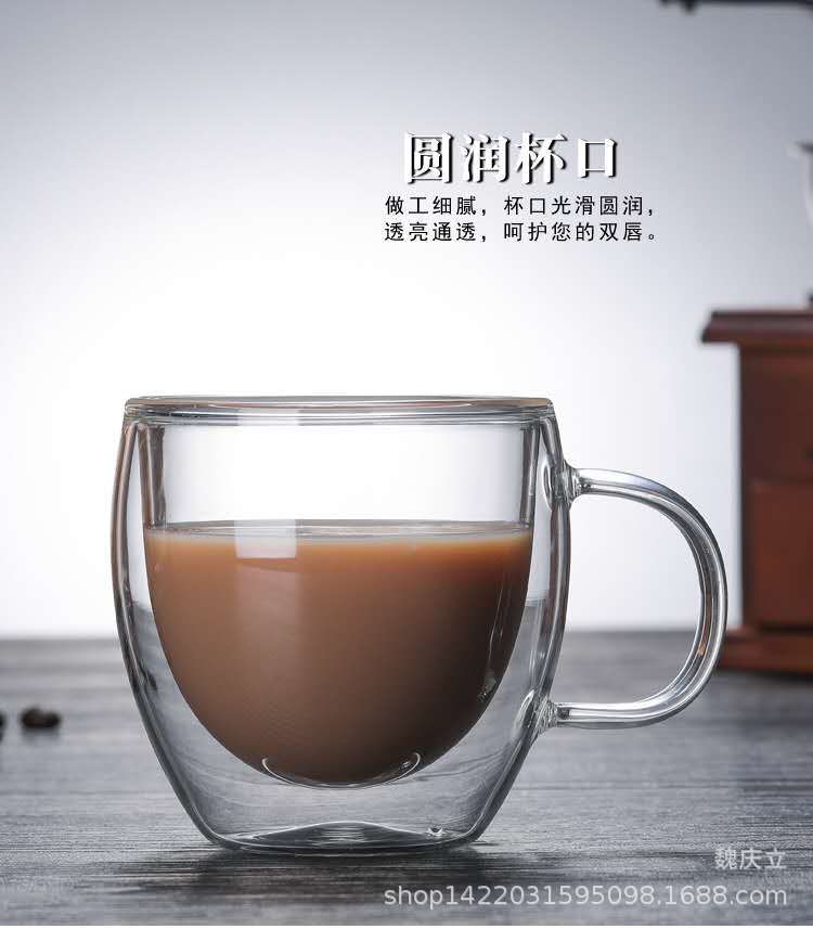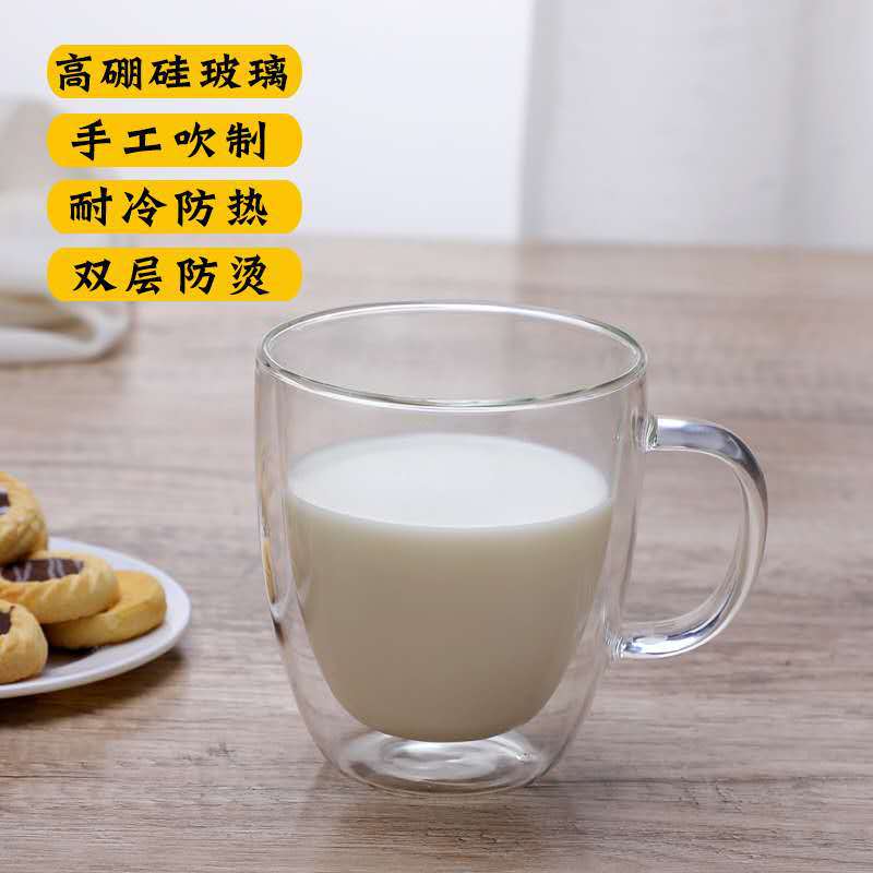 Fábrica al por mayor de alto borosilicato de doble capa de vidrio transparente taza de jugo taza de café taza de leche con taza taza de té