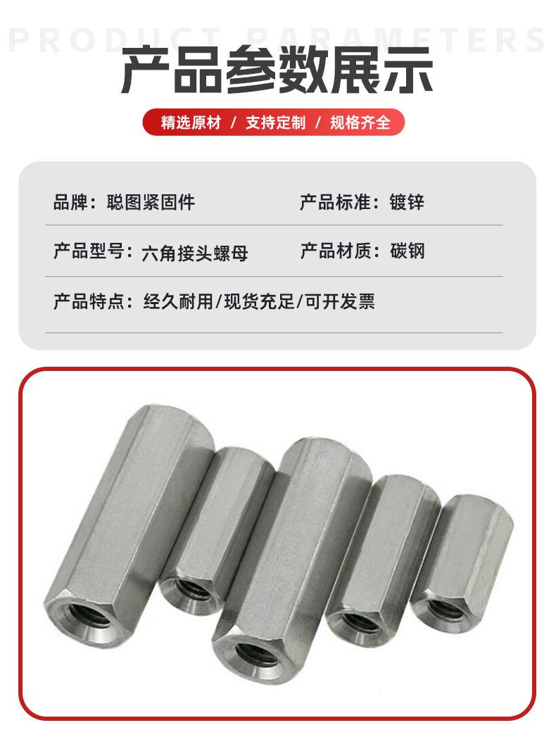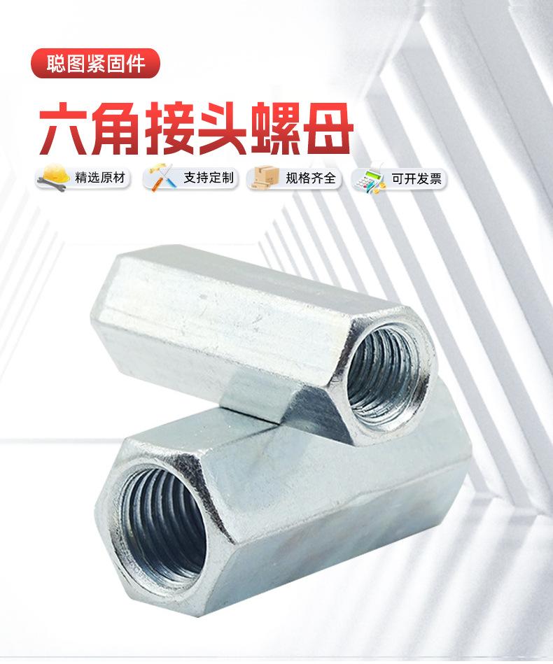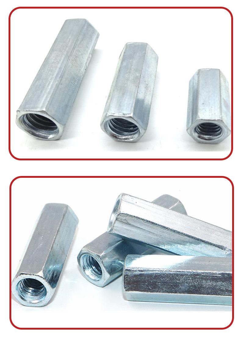 Tuerca de unión en stock, venta al por mayor, GB, galvanizada, alargada, engrosada, tuerca hexagonal larga, tuerca de conexión de tornillo M6-M48