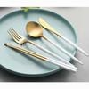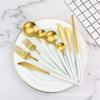 | Vajilla occidental de acero inoxidable 304 chapado en oro y titanio, cuchillo, tenedor y cuchara, cuchillo para carne, cuchillo y tenedor para pescado, juego de suministros para hotel |