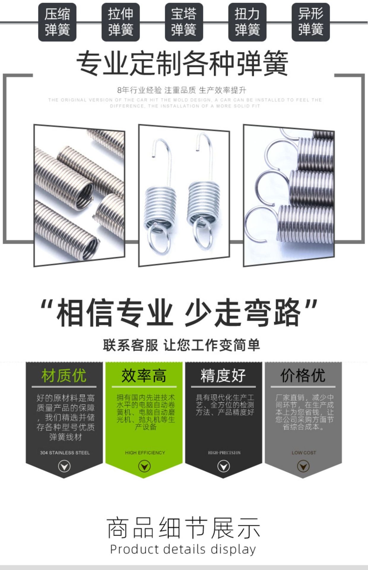 Resorte de tensión de acero inoxidable de 1,2 x 12, resorte de gancho abierto, resorte de tensión, gancho de tensión, gancho en forma de S, gancho simple, resorte largo y corto