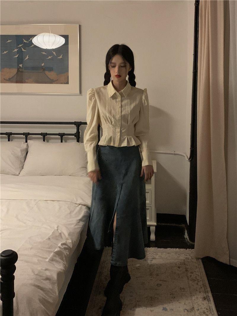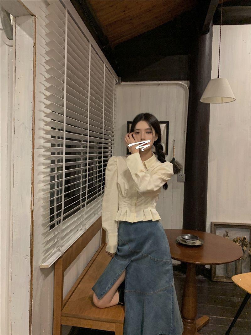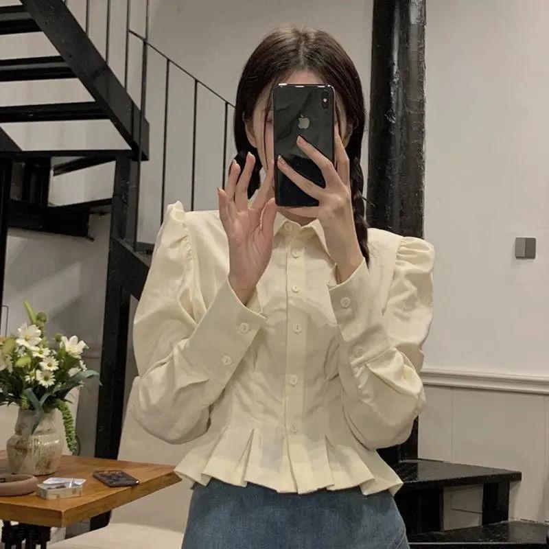 Compra Camisa ajustada a la cintura para mujer, diseño de nicho, estilo francés retro chic, top corto pequeño, moda 2023 al por mayor en Joom.pro