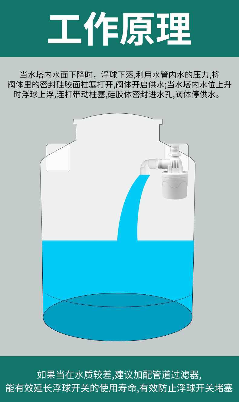 Interruptor de válvula de flotador de plástico para tanque de agua de torre de agua, controlador de nivel de agua automático, válvula de parada de agua, válvula de parada completa de agua