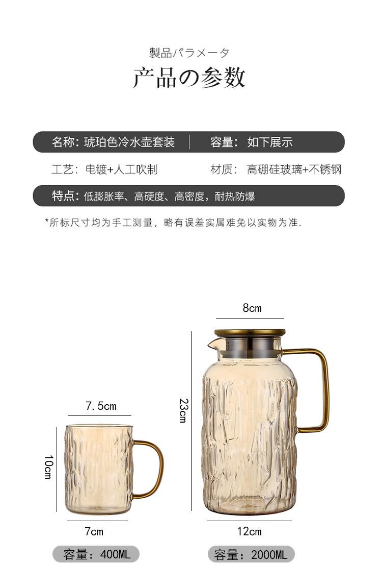 Nuevo Estilo Hervidor de Agua Fría Vidrio Lujo Ligero Taza de Agua Fría para el Hogar Resistente a Caídas Resistente a Altas Temperaturas Tetera Gran Capacidad Juego de Hervidor de Agua Fría