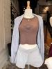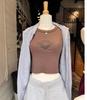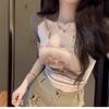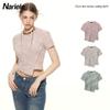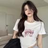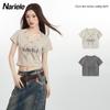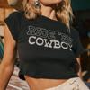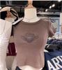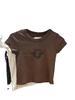 Camiseta de cuello redondo corta con estampado de cabeza de toro y alas marrones estilo BM, camiseta de manga corta ajustada con cintura alta y ombligo descubierto para chica sexy BM