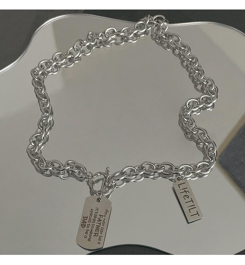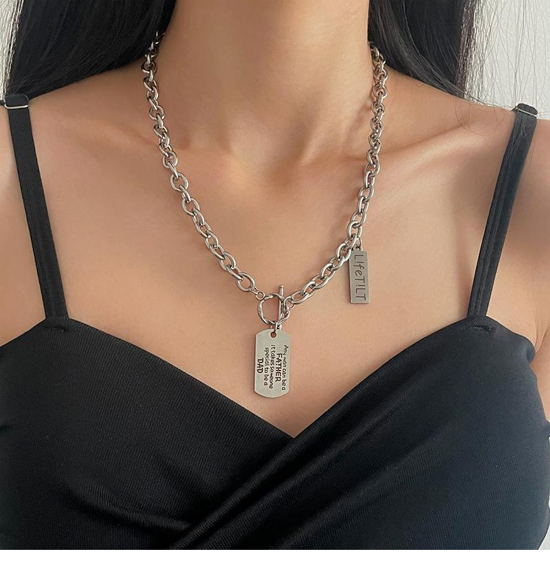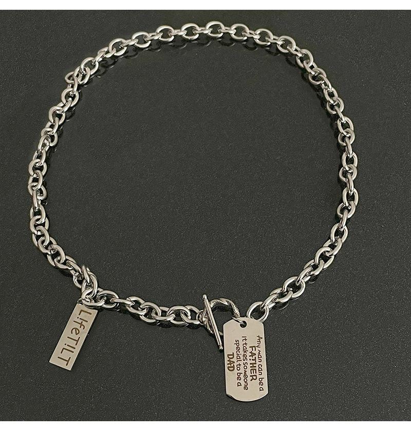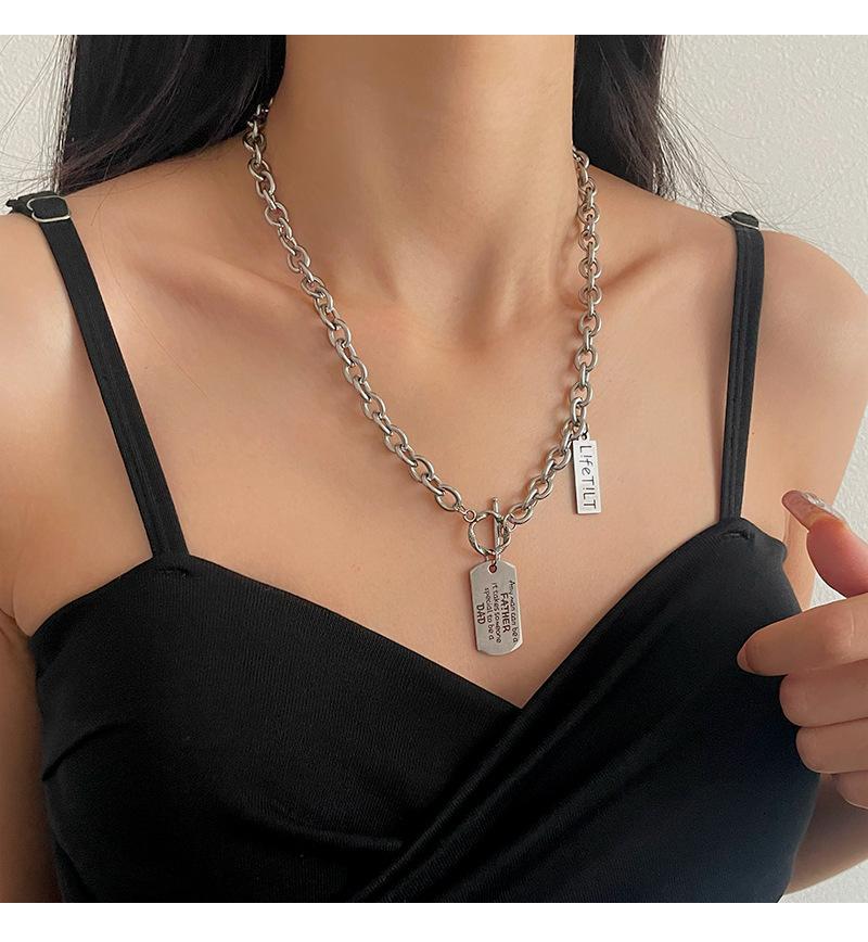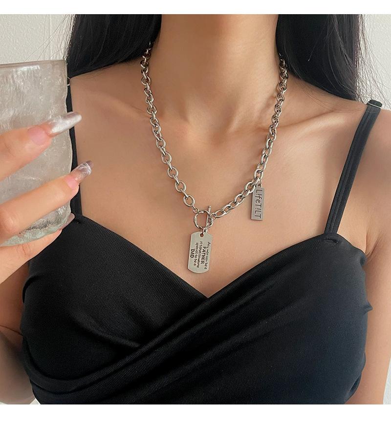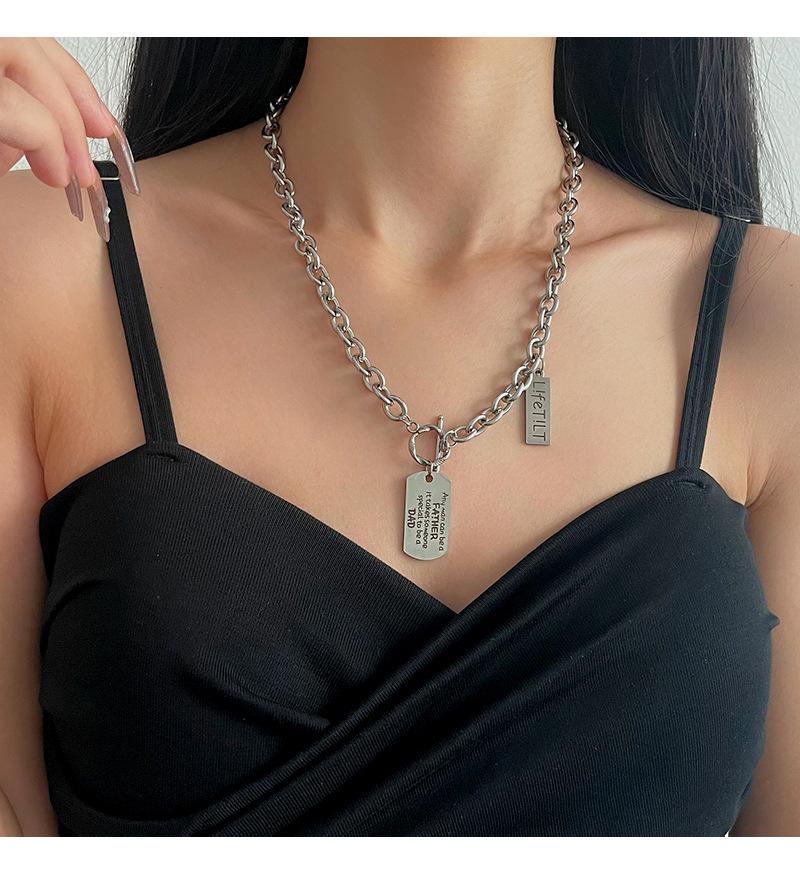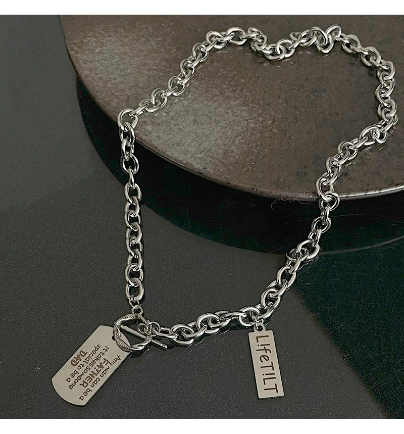 Compra Collar con colgante de letra cuadrada simple europea y americana para hombre, estilo nicho, ligero, de lujo, estilo hip hop, de acero de titanio, resistente a la decoloración, para mujer. al por mayor en Joom.pro