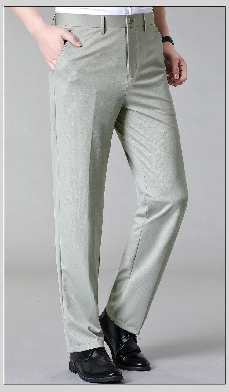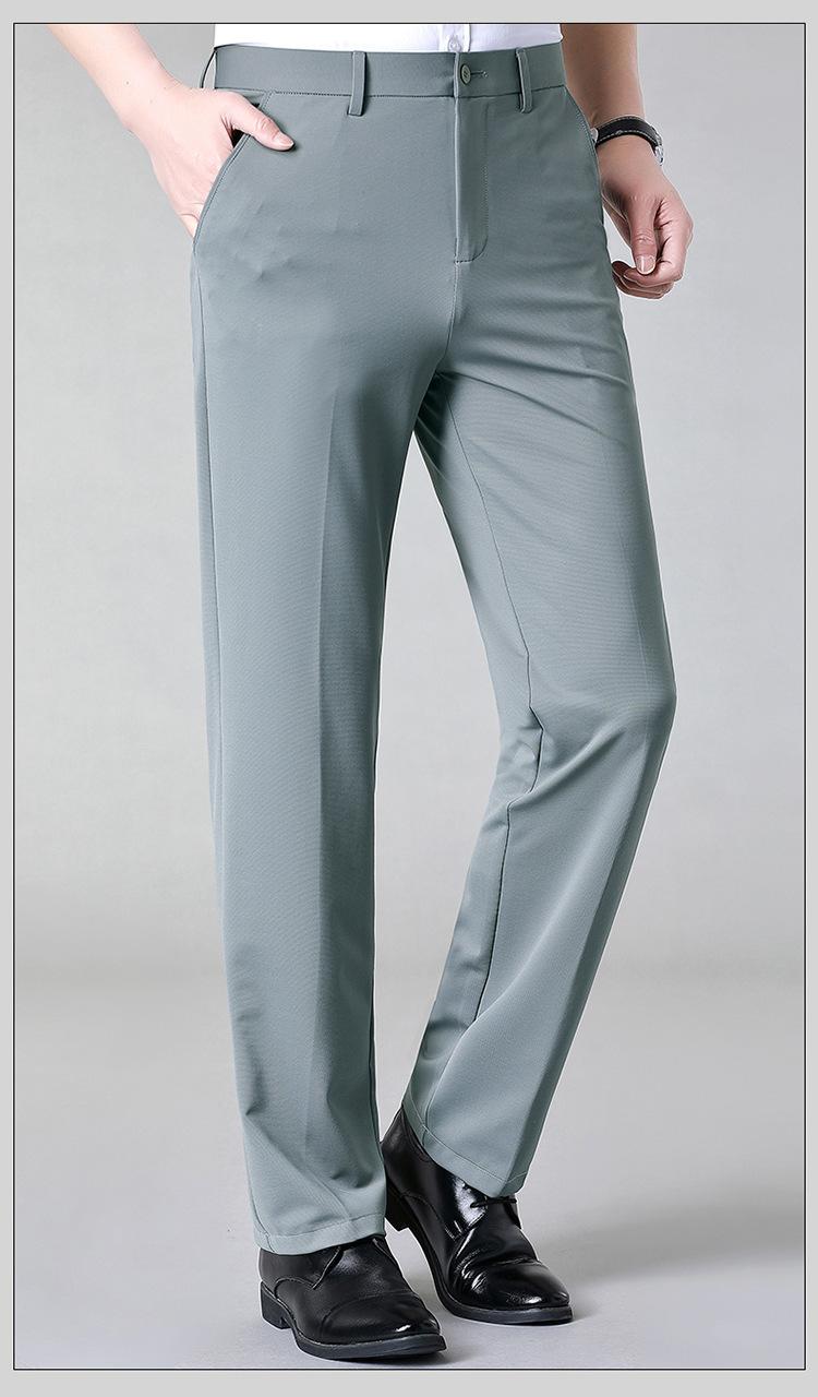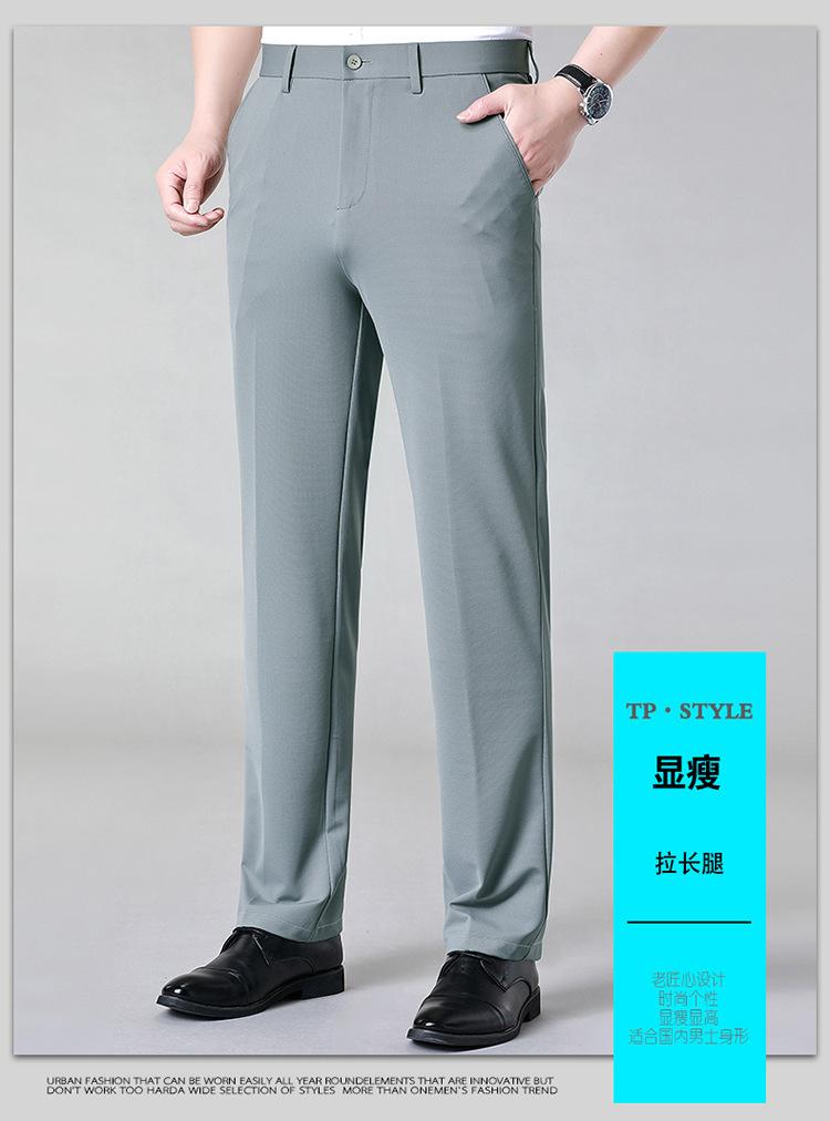 Pantalones casuales de seda de hielo para hombre, de verano, finos, rectos, sueltos, de talla grande, 2025, nuevos pantalones de negocios antiarrugas para hombre