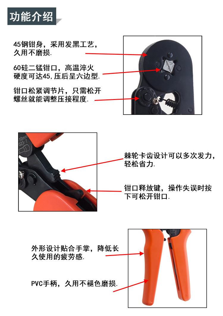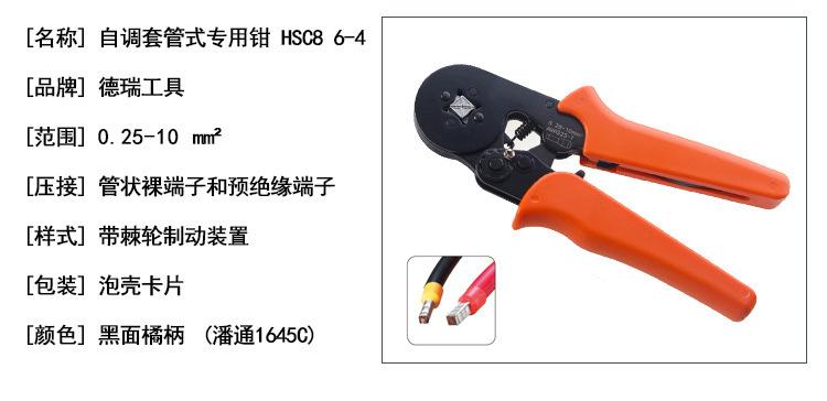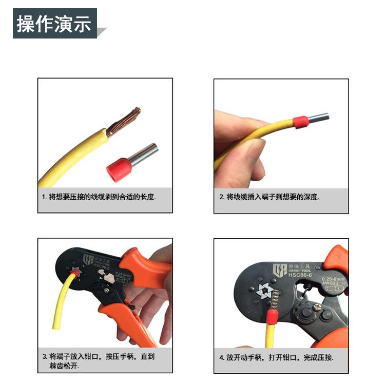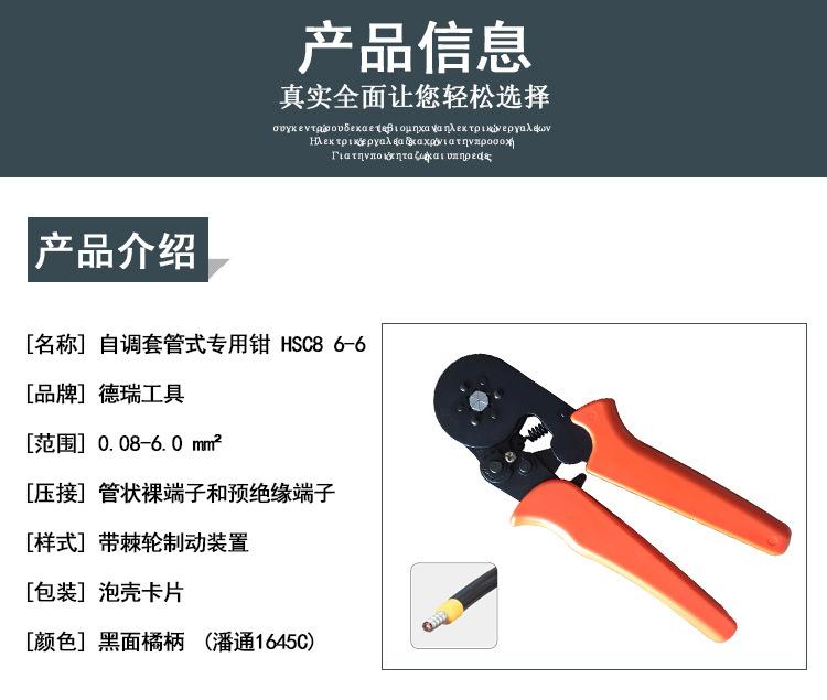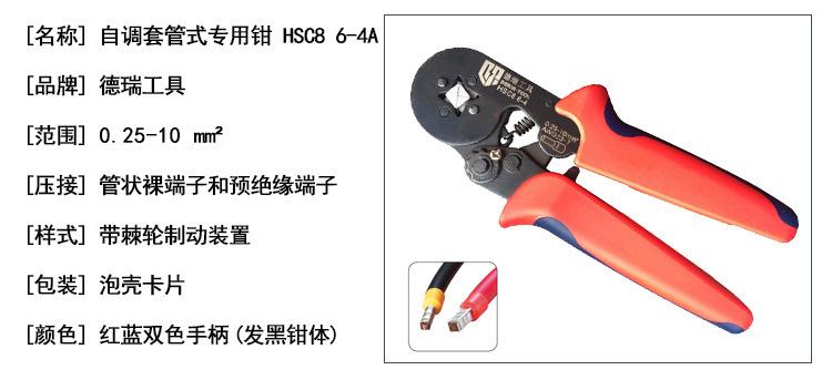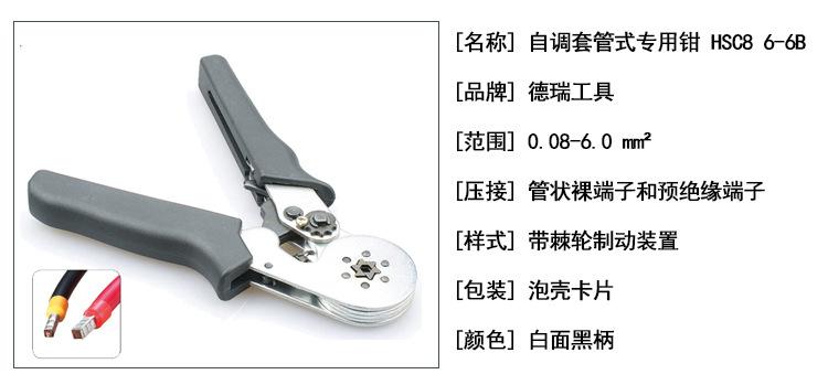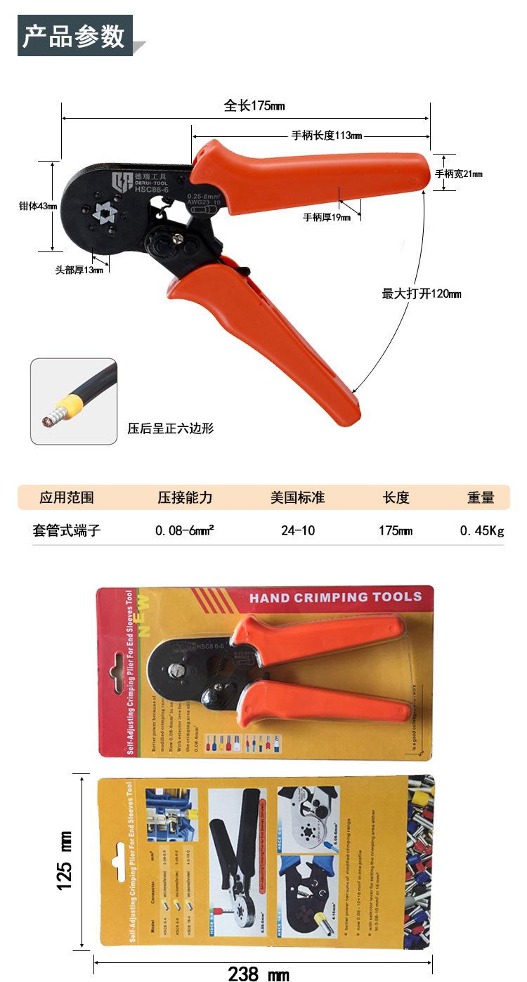 Hsc8 6-6A Pinzas de crimpado para terminales tubulares Tipo aguja Pinzas de crimpado Crimpado de cuatro lados Estilo europeo 0.25-6mm2