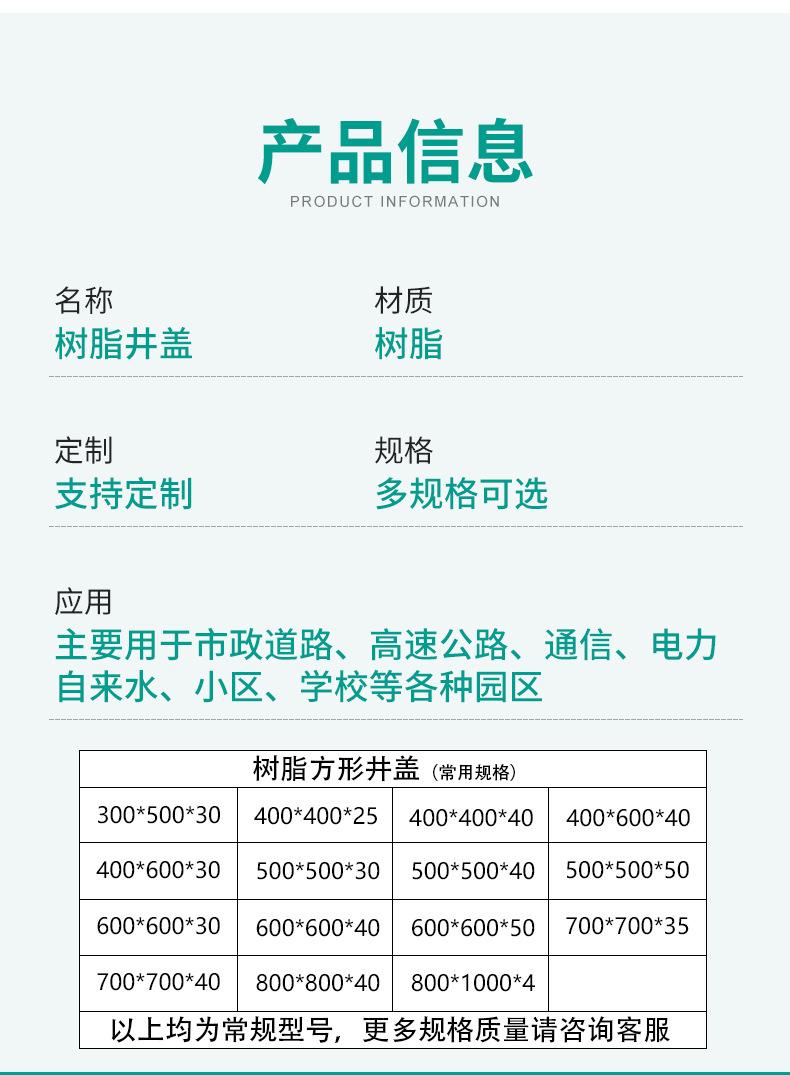 Tapa de Pozo Cuadrada de Resina Compuesta Cubierta de Pozo de Lluvia Aguas Residuales Alcantarillado Eléctrico Cubierta de Plástico Resina Procesamiento de Tapa de Pozo