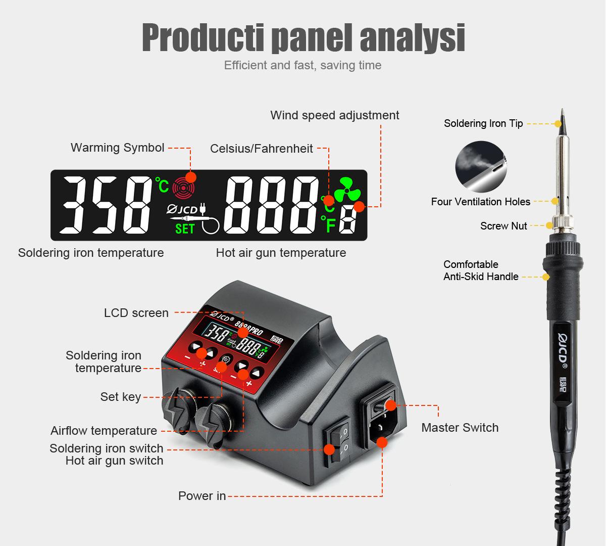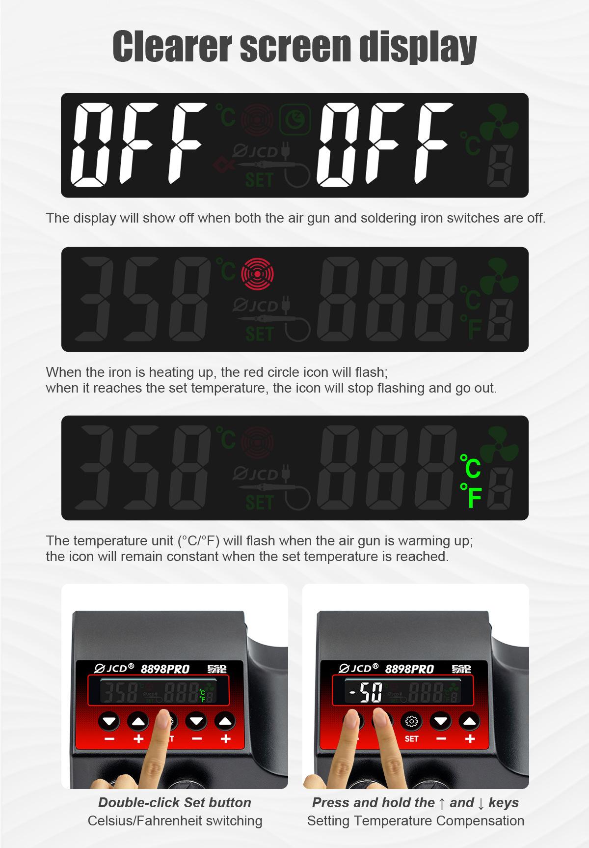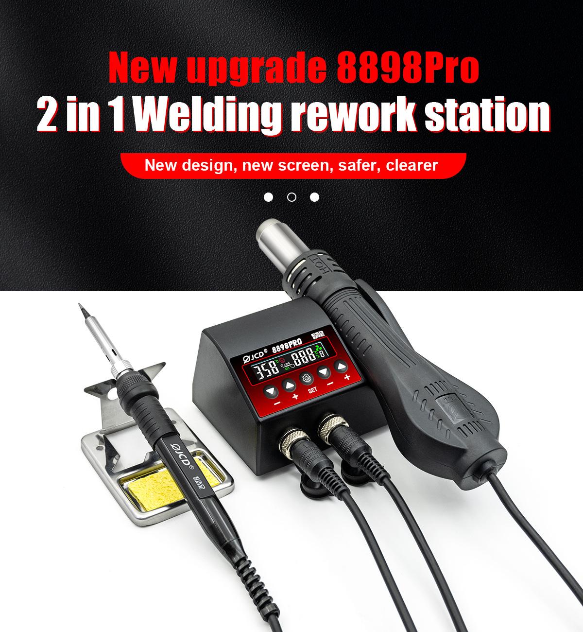 Pistola de aire caliente JCD soldador eléctrico 2 en 1 estación de soldadura 8898Pro estación de soldadura con pantalla digital absorbedor de estaño kit de soldadura para mantenimiento