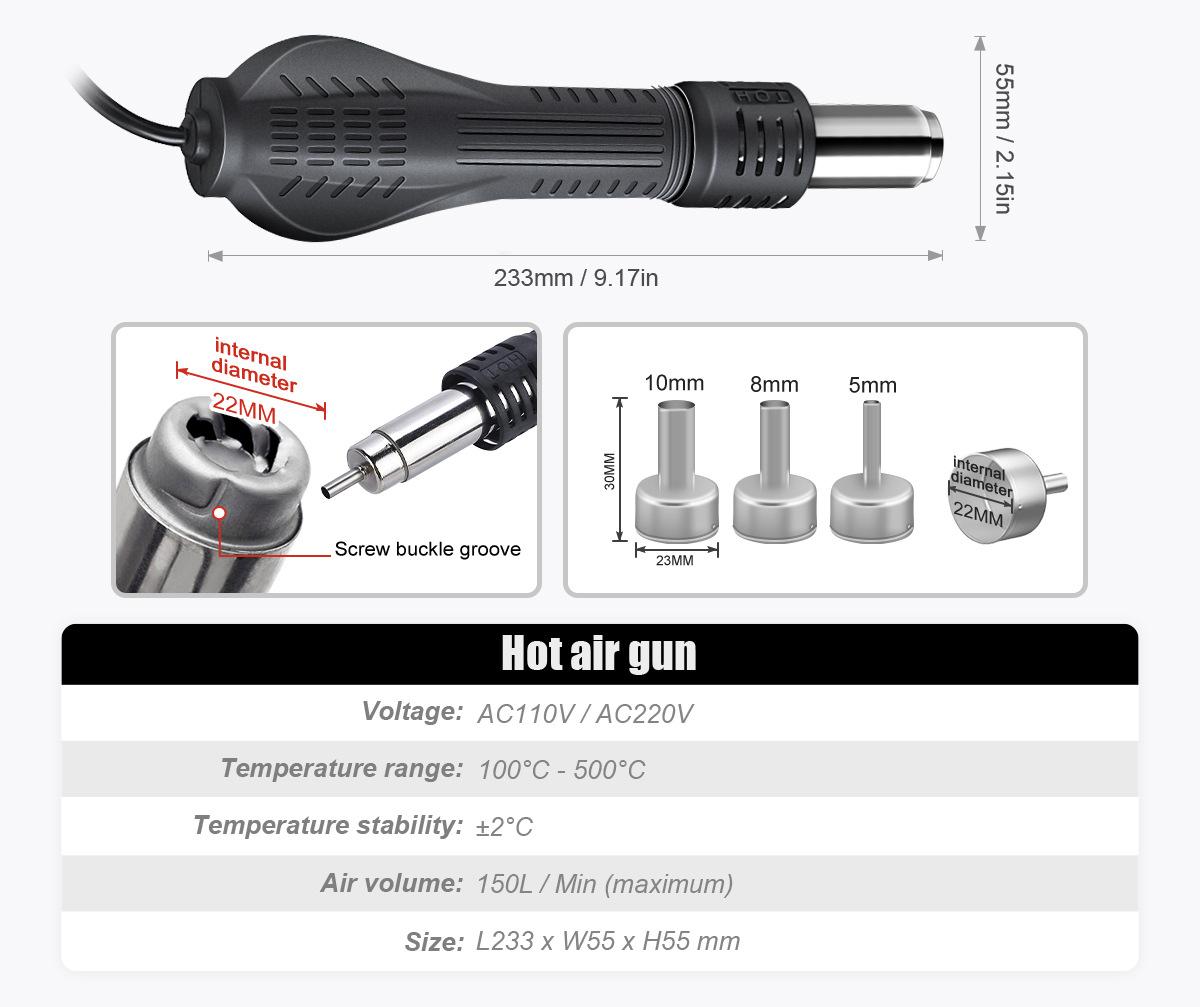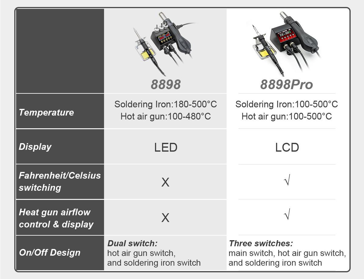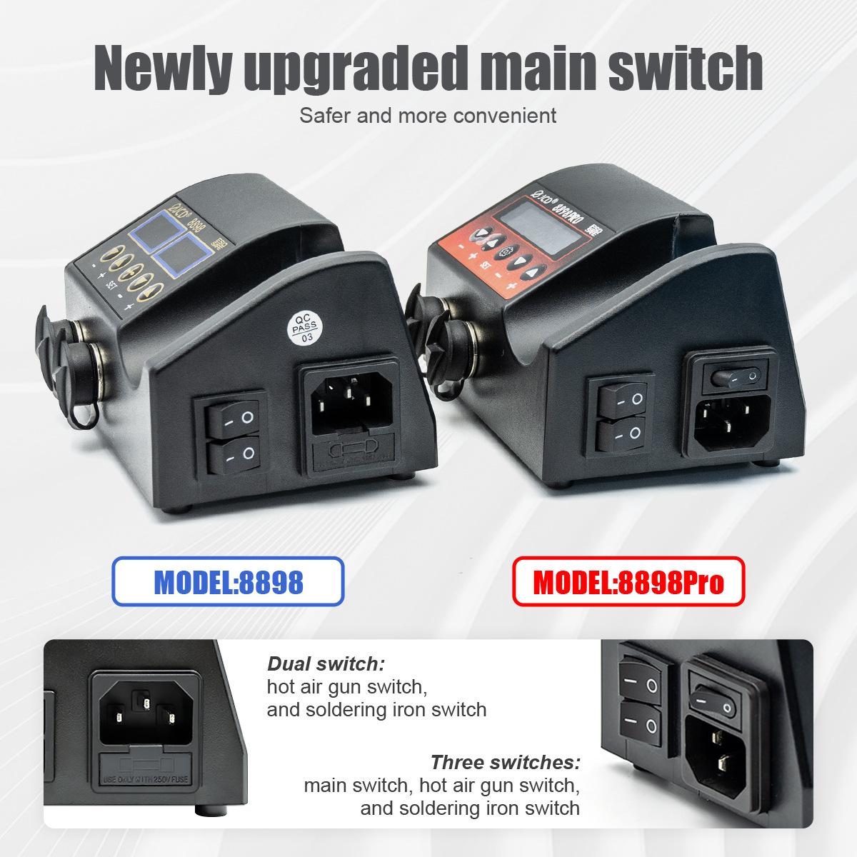 La nueva versión mejorada de la estación de soldadura dos en uno de pistola de aire caliente y soldador 8898pro cumple con los estándares europeos y americanos. Se vende directamente por el fabricante, y la marca registrada se puede personalizar. Se entrega a tiempo. En circunstancias normales, se entregará en 24 horas. La plataforma ha establecido una garantía de entrega en 48 horas. Por favor, siéntase libre de ordenar.