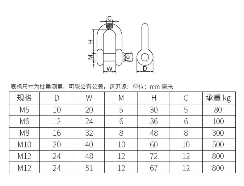 Grillete en U Acero Inoxidable 304 Grillete en D Ensanchado Accesorios de Elevación de Cadena Marina
