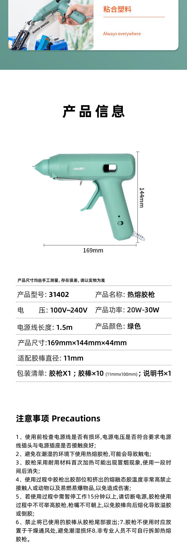 Pistola de pegamento termofusible Deli 31402 de 20 W a 30 W, ideal para estudiantes y niños. Pistola de pegamento. Número de casa. Pistola de pegamento termofusible.