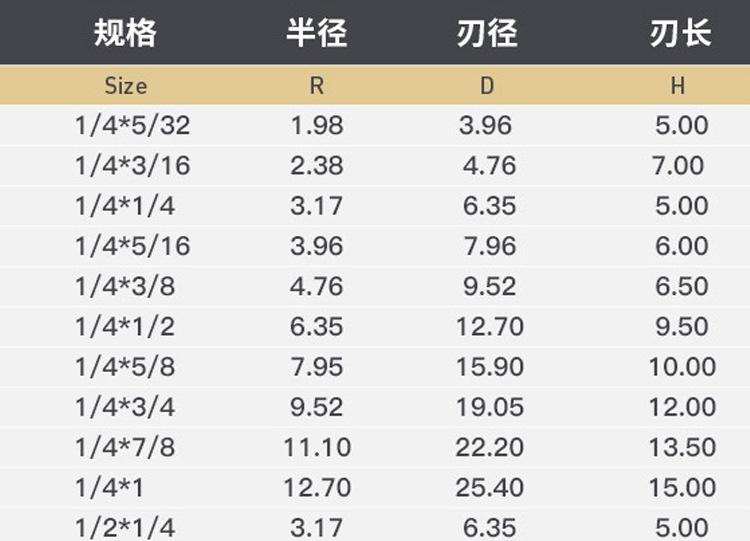 V-shaped knife 1/4*1/4(6mm), V-shaped knife 1/4*5/16(8mm), V-shaped knife 1/4*3/8(10mm), V-shaped knife 1/4*1/...