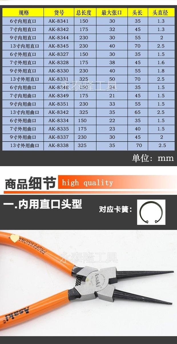 Alicates de anillo de retención al por mayor, alicates de resorte, alicates de anillo de retención, alicates de codo recto de 6, 7, 9 y 13 pulgadas