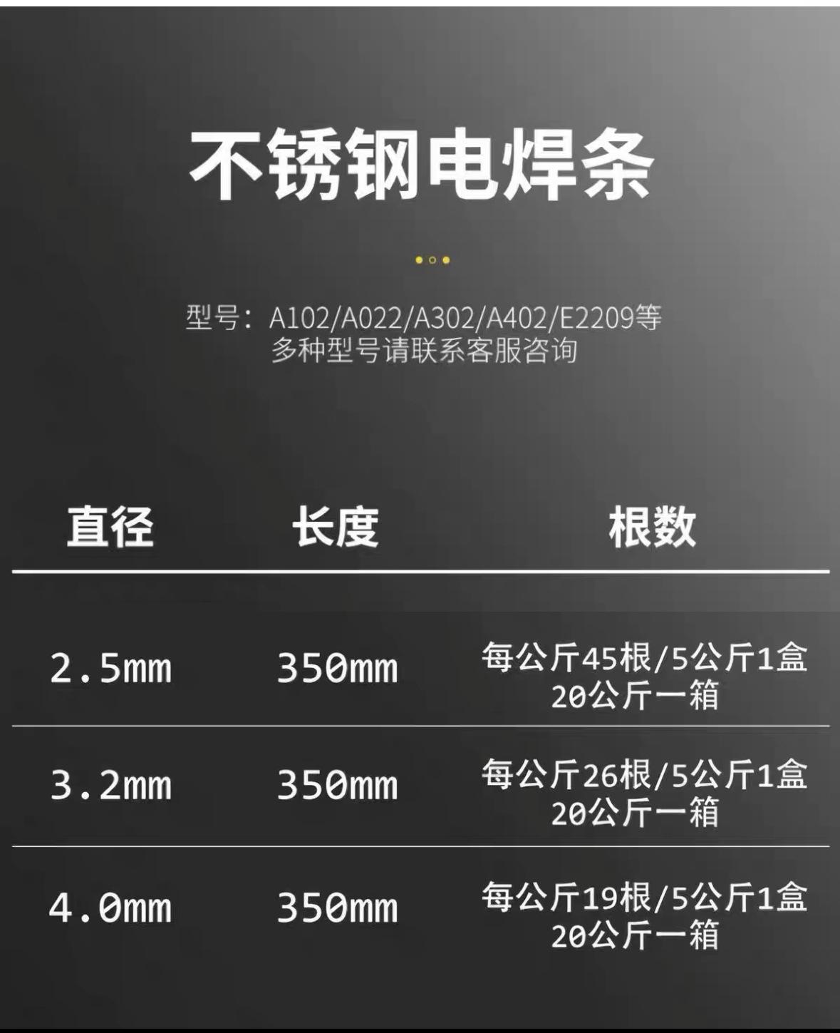 A102(2.5mm) 5kg, A102(3.2mm) 5kg, A102(4.0mm) 5kg, A302(2.5mm) 5kg, A302(3.2mm) 5kg, A302(4.0mm) 5kg, A402(2.5...