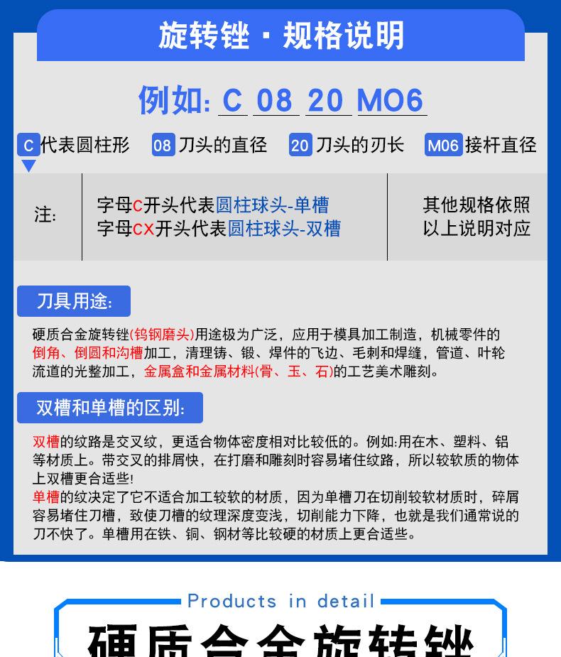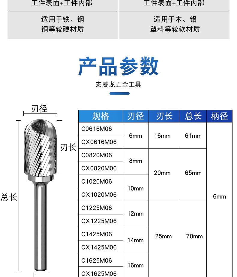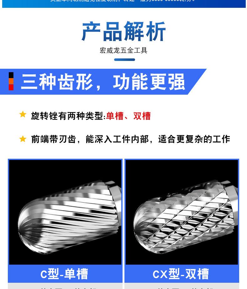 Lima rotatoria de aleación, cabezal de rectificado de metal, cortador de fresado de acero de tungsteno, lima rotatoria, cortador de doble ranura, tallado de madera, tipo C