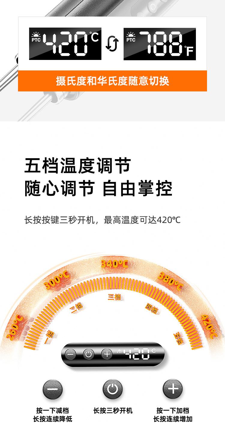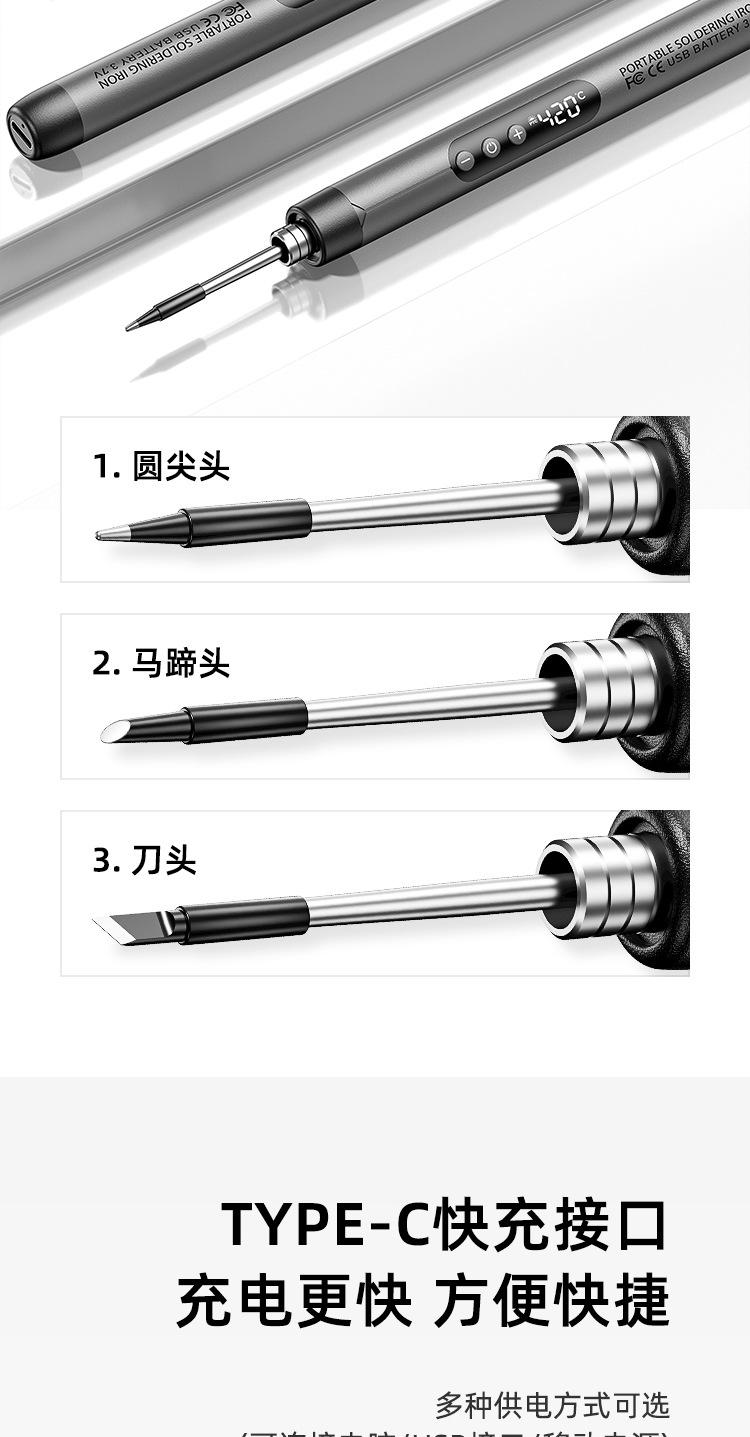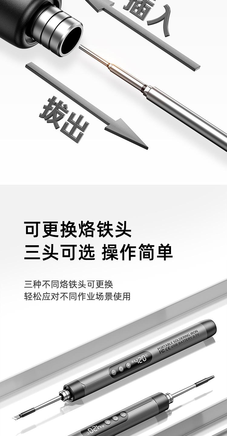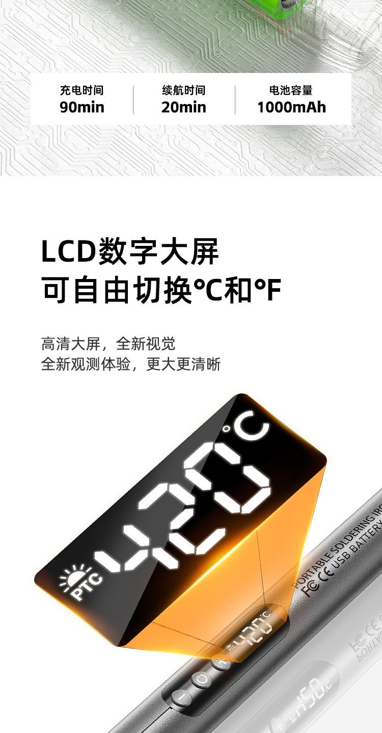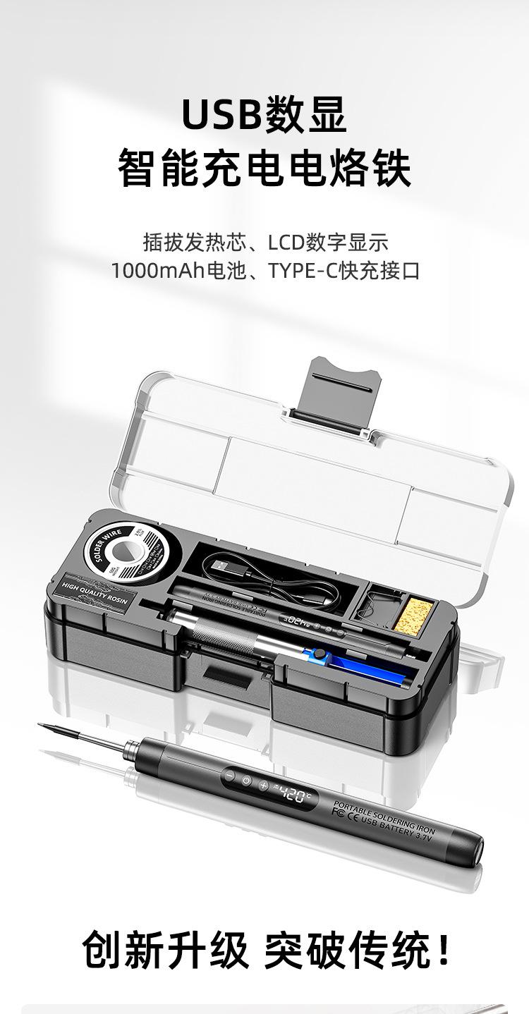 Soldador eléctrico portátil inalámbrico con pantalla digital USB y carga de larga duración, herramienta de reparación de electrodomésticos.