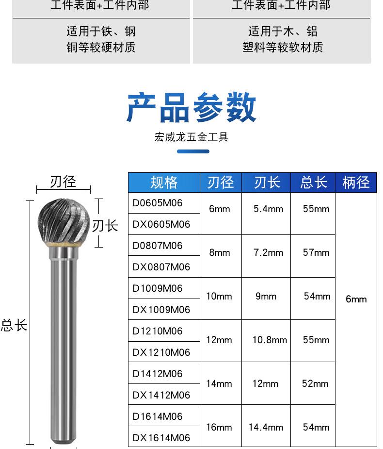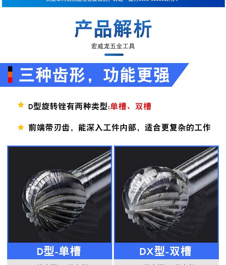 Lima rotatoria de aleación, cabezal de rectificado de metal, cortador de fresado de acero de tungsteno, lima rotatoria, cortador de doble ranura, tallado de madera, tipo D