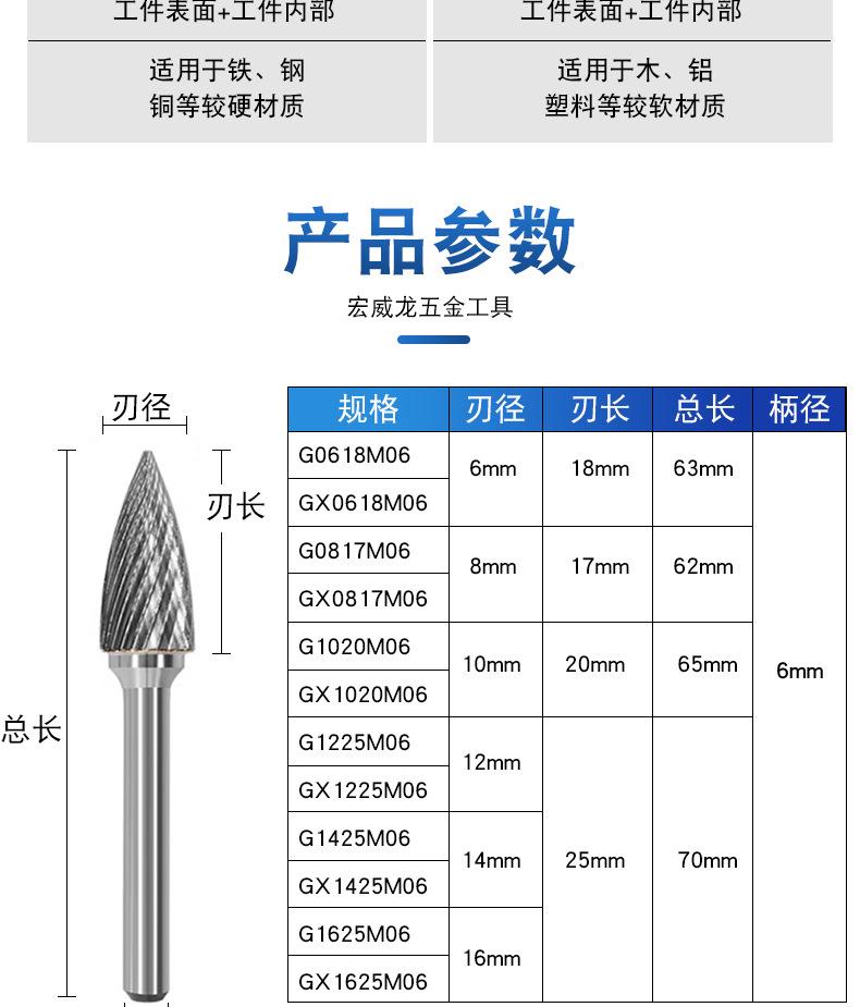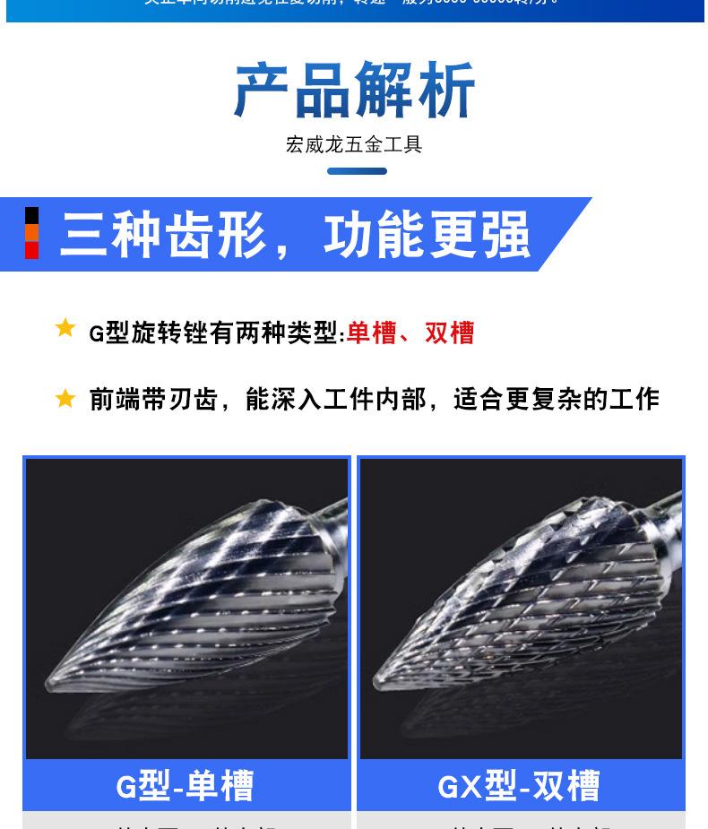 Lima rotatoria de aleación, cabezal de rectificado de metal, cortador de fresado de acero de tungsteno, lima rotatoria, cortador de doble ranura, tallado de madera, tipo G