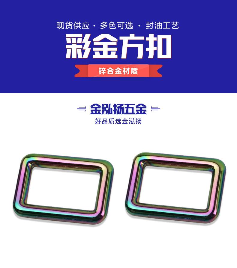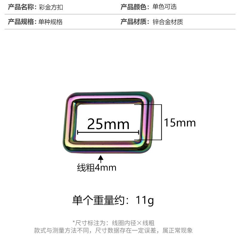 Accesorio para equipaje de 1 pulgada, hebilla cuadrada de siete colores fundida a presión, bolso de aleación de zinc con hebilla ajustable, diámetro interior de la hebilla de labio de 25 mm