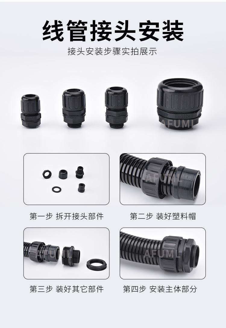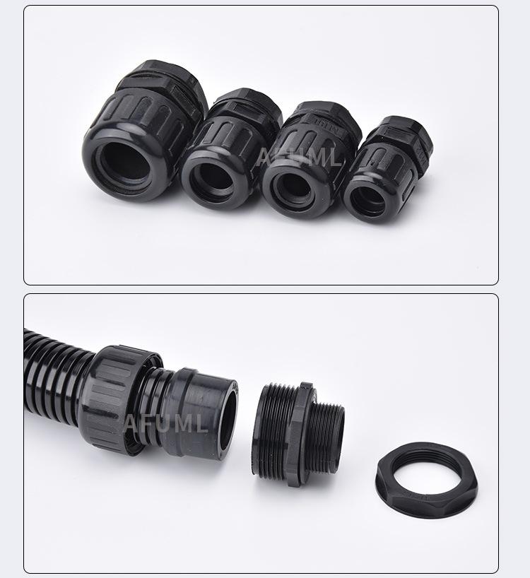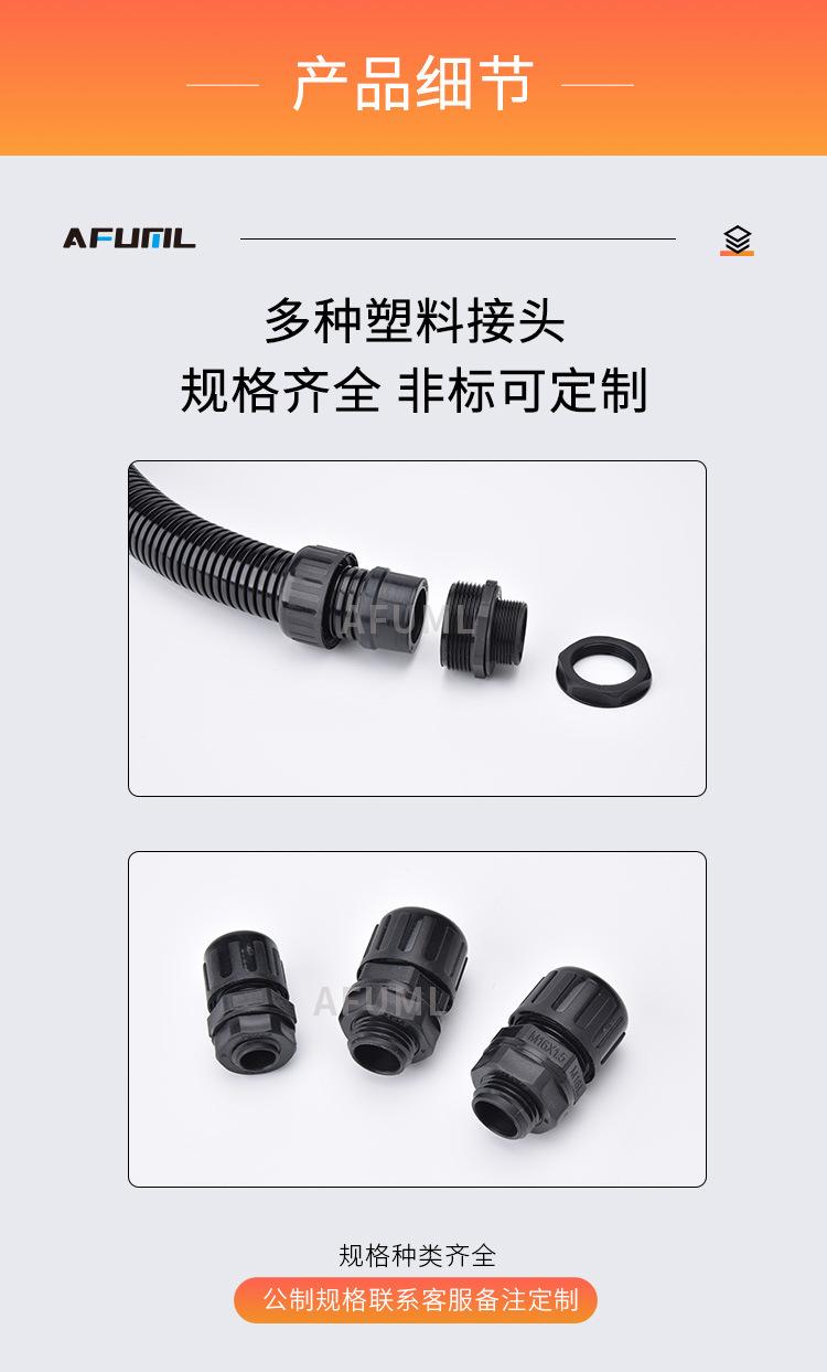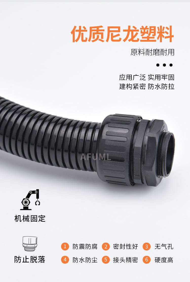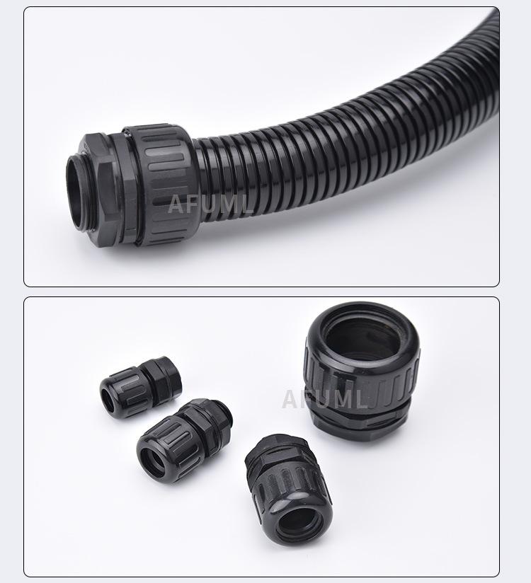Manguera de nailon AFUML PA66, impermeable, antitensión, con junta de tubo corrugado de plástico AD10-54.5, color negro brillante