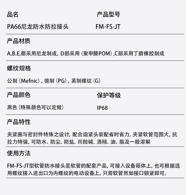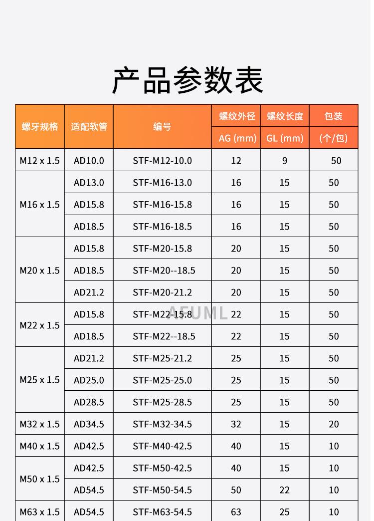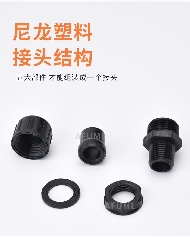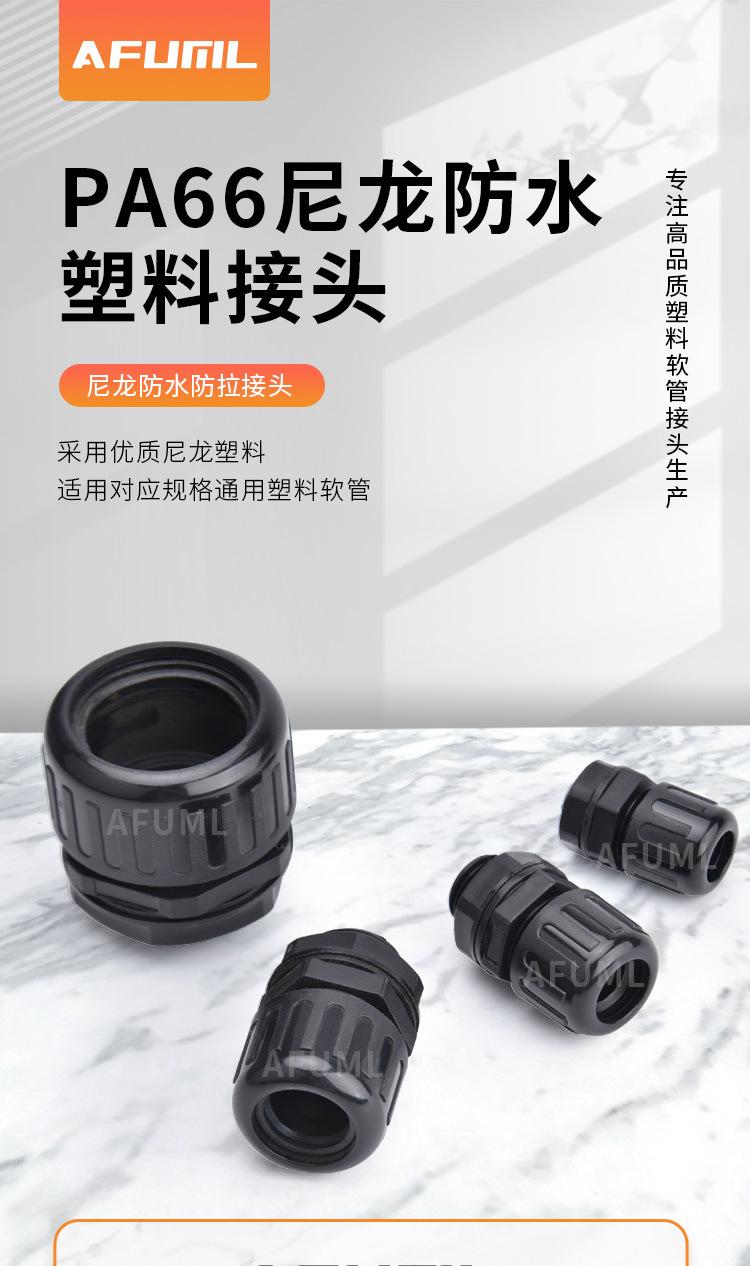 Manguera de nailon AFUML PA66, impermeable, antitensión, con junta de tubo corrugado de plástico AD10-54.5, color negro brillante