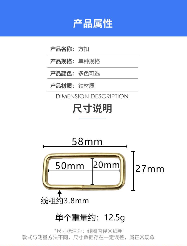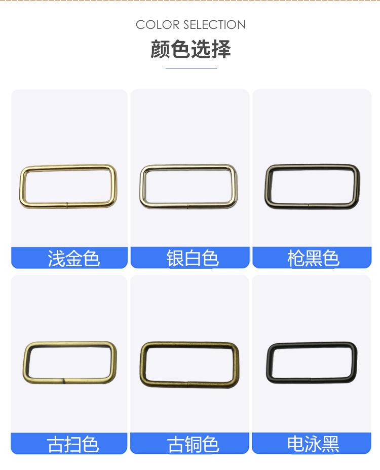 Hebilla cuadrada de alambre metálico de 3,8 mm de grosor, diámetro interior de 50 mm, correa de hombro, hebilla de cinta, herrajes para equipaje, hebilla rectangular de boca