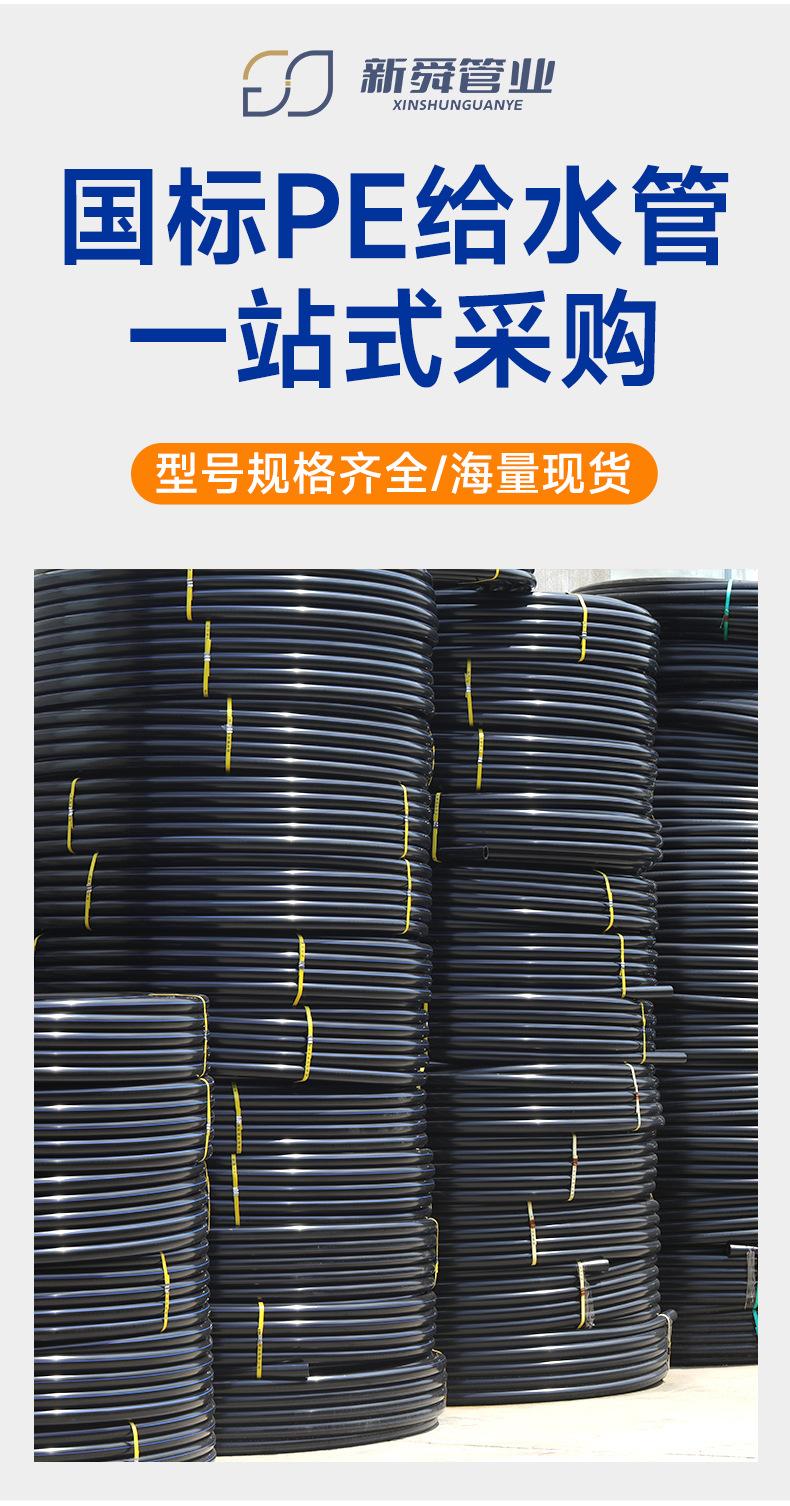 Tubería de suministro de agua pe tubería de agua del grifo suministro de agua 20 suministro de agua potable negro pe bobina 32 tubería rígida tubería de riego fábrica