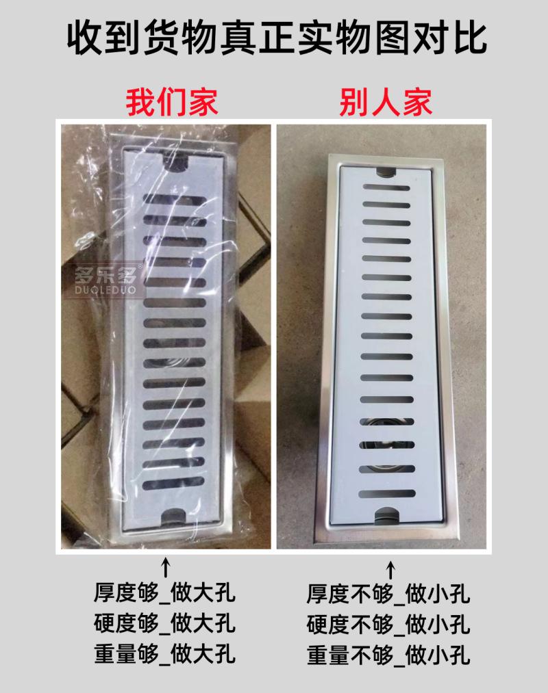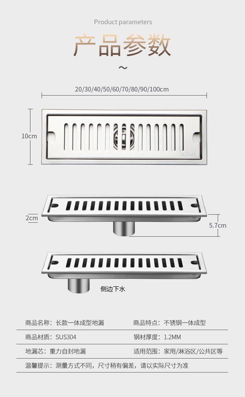 Desagüe de piso largo de acero inoxidable 304 [conformación por estiramiento integrada]