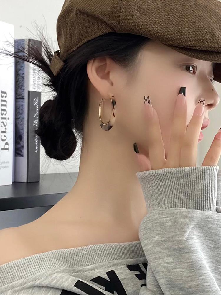 Aretes Acrílicos Cool Exagerados con Estampado de Leopardo Personalizado Elegantes Aretes de Aro 2025 Nueva Moda para Mujer Moda Europea y Americana
