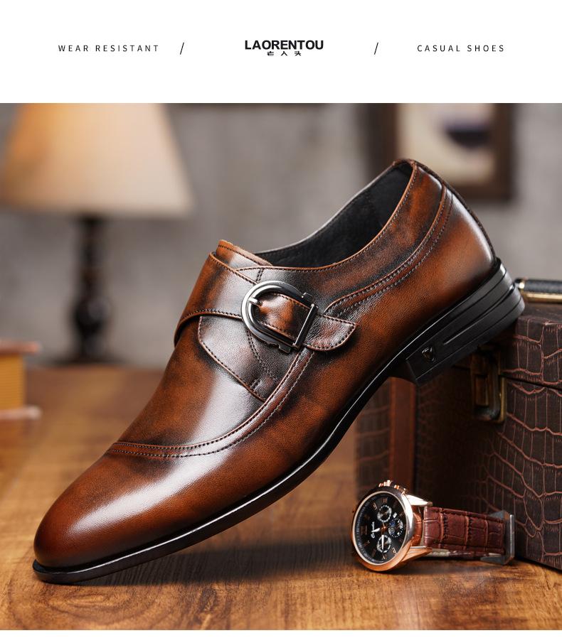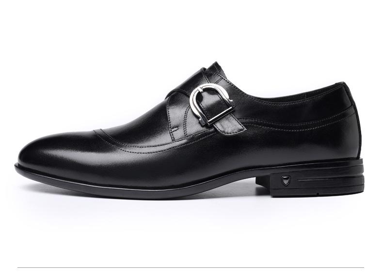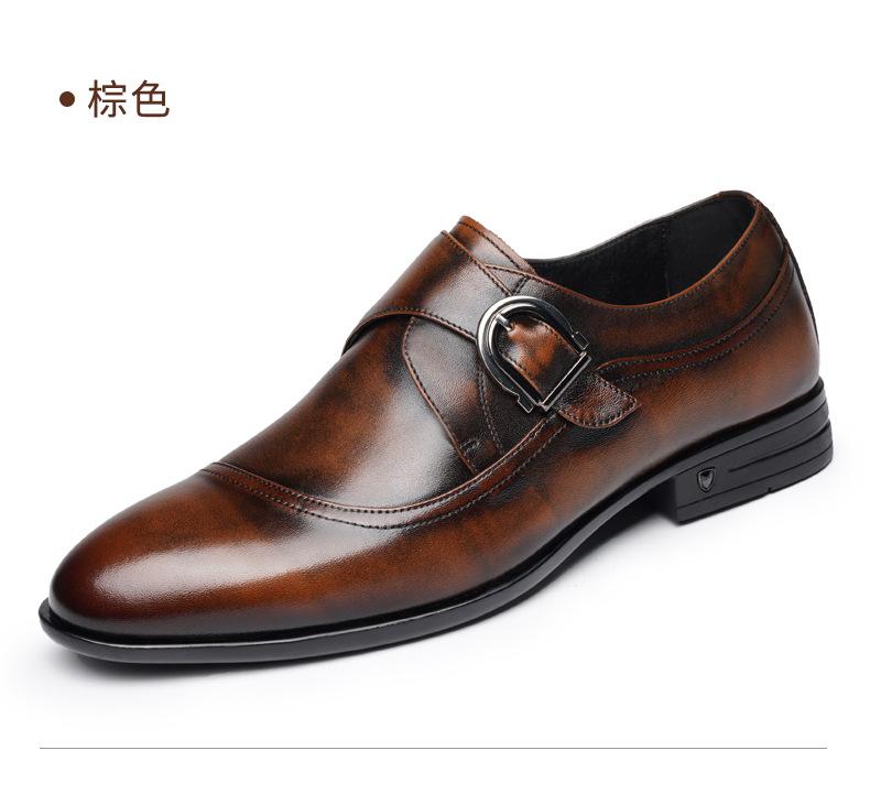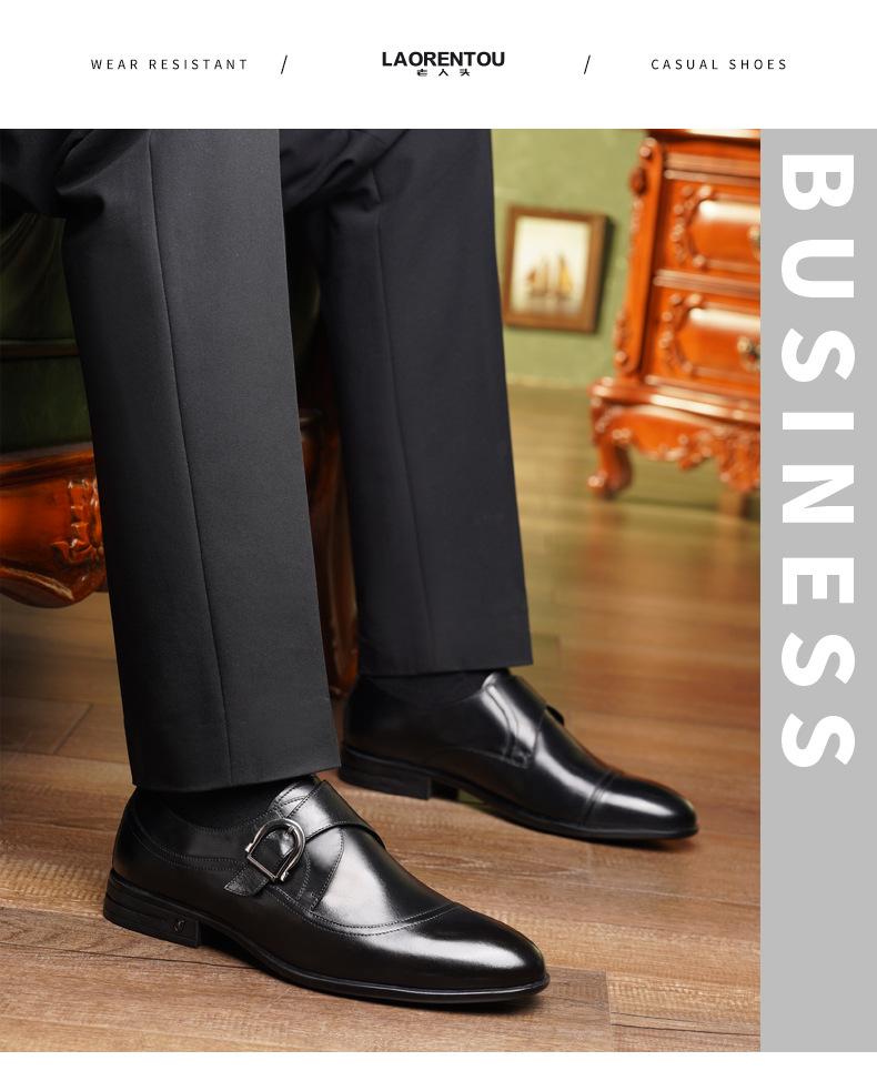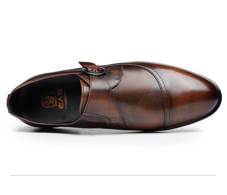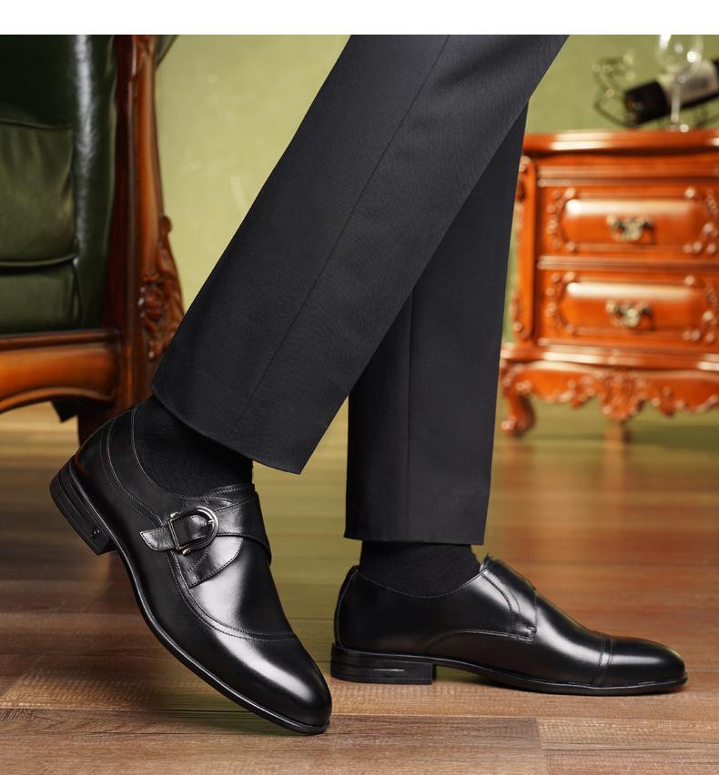 Zapatos de Cuero Formales de Negocios para Hombre Mayor, Zapatos Monk de Hebilla Estilo Británico, Zapatos de Piel de Vacuno para Hombre 22022